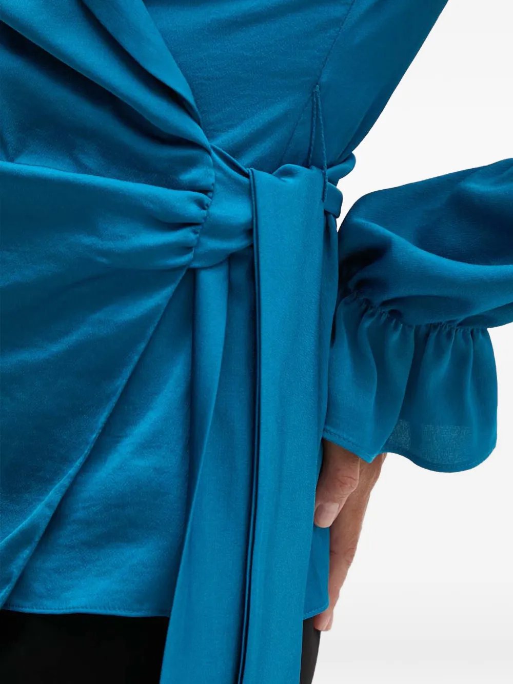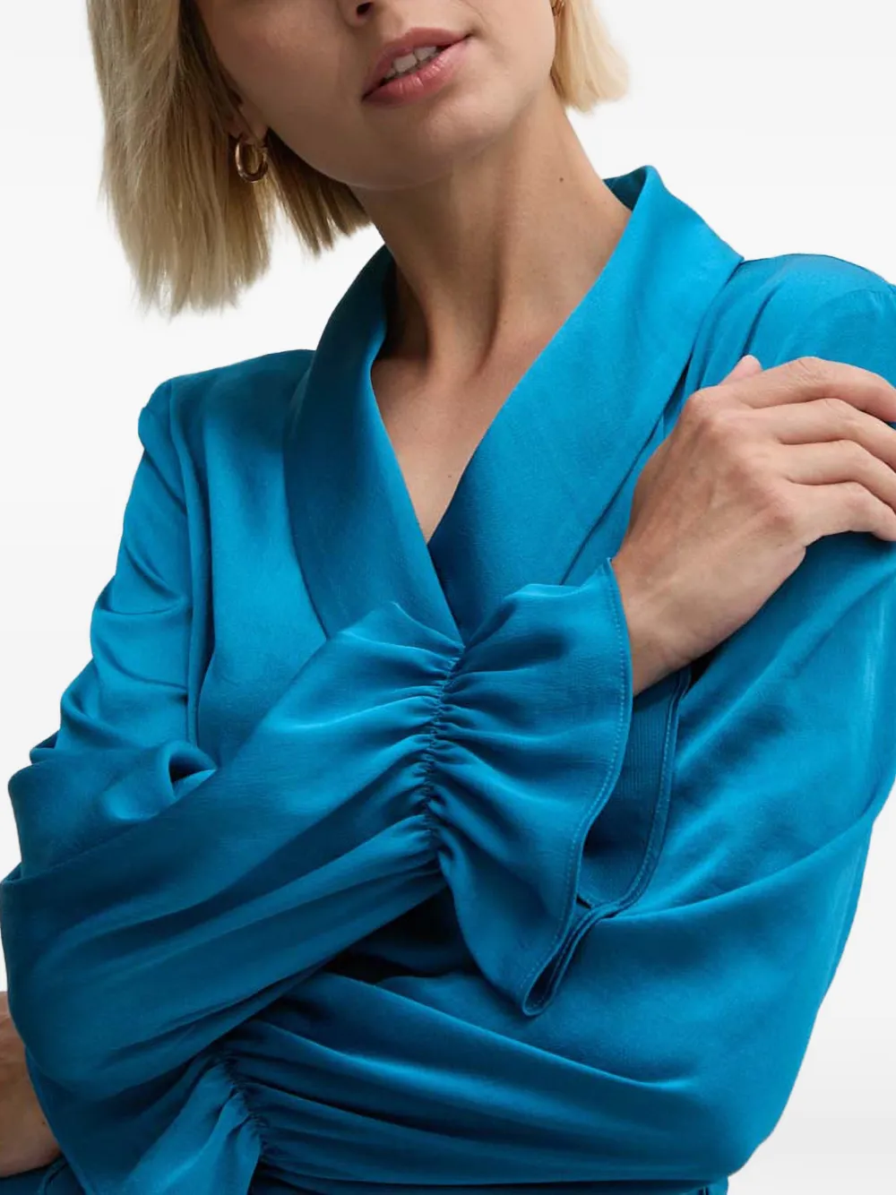 Бирюзовые манжеты с оборками, V-образный вырез, застежка на завязке, длинные рукава, запахивающийся дизайн