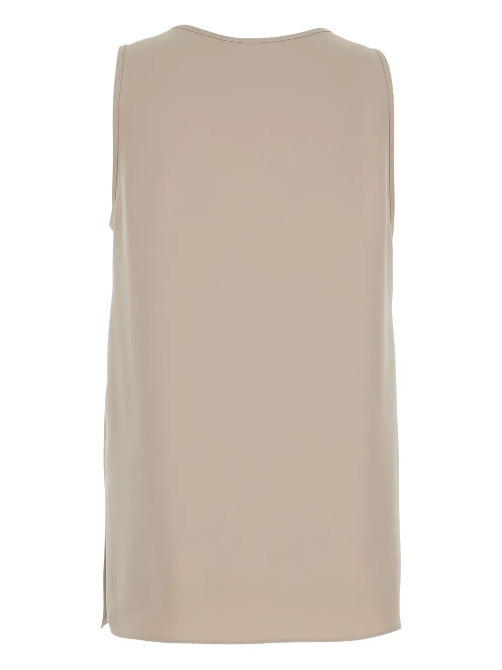 Светло-бежевый, без рукавов, круглый вырез, боковой разрез