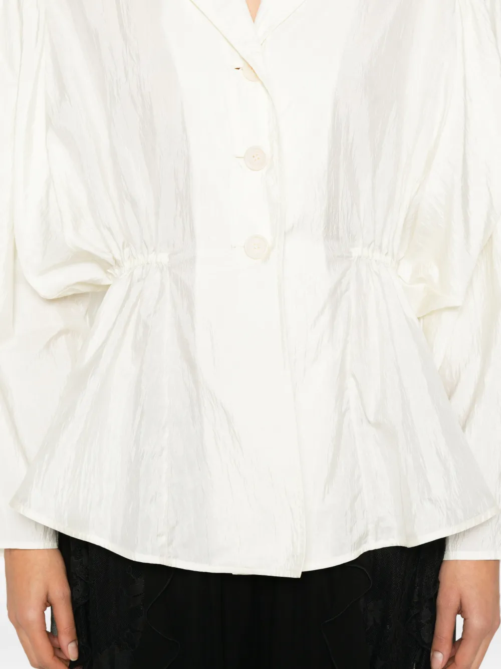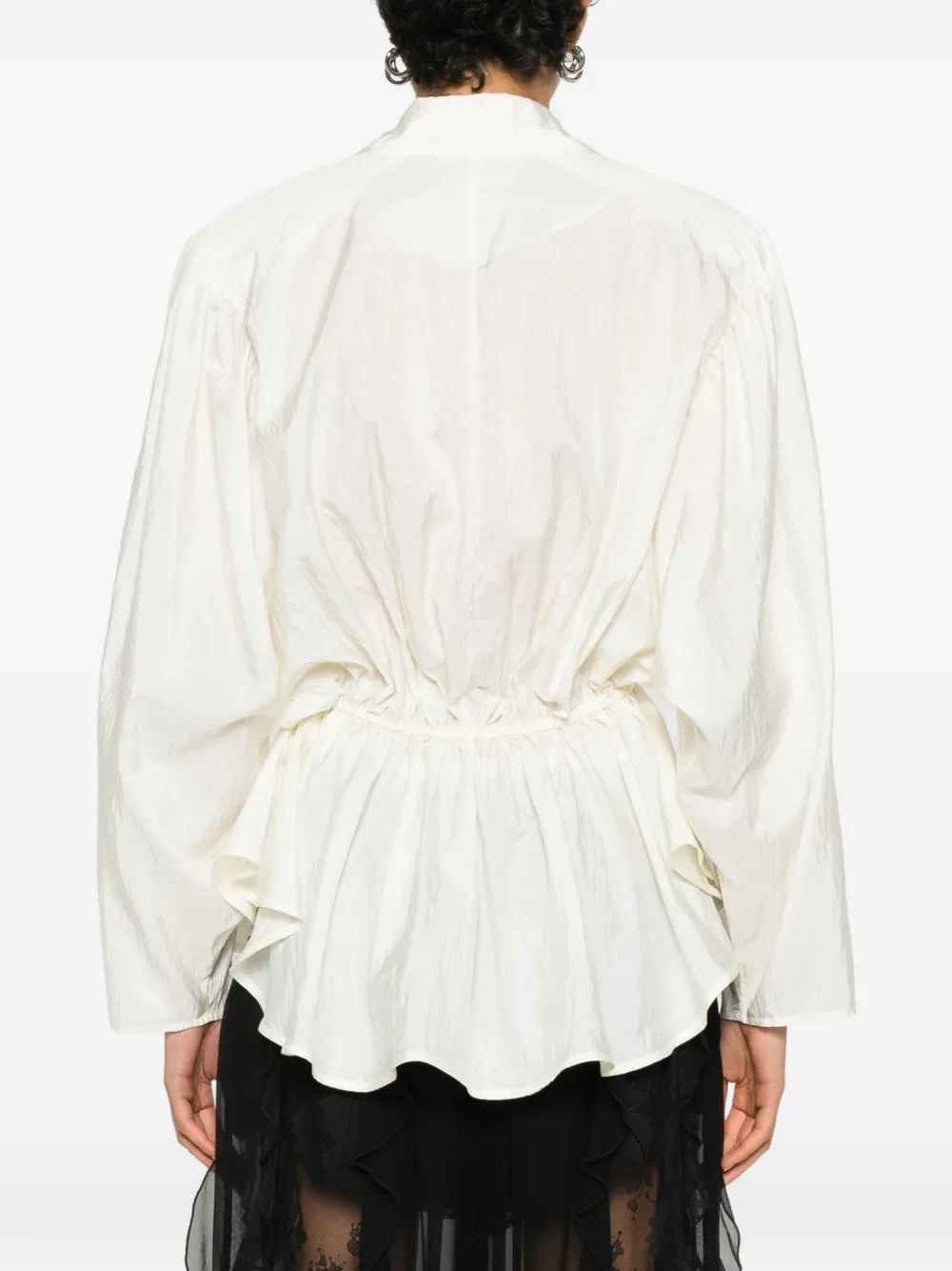 Белая рубашка с застежкой на пуговицы, длинными рукавами, оборчатым низом и воротником