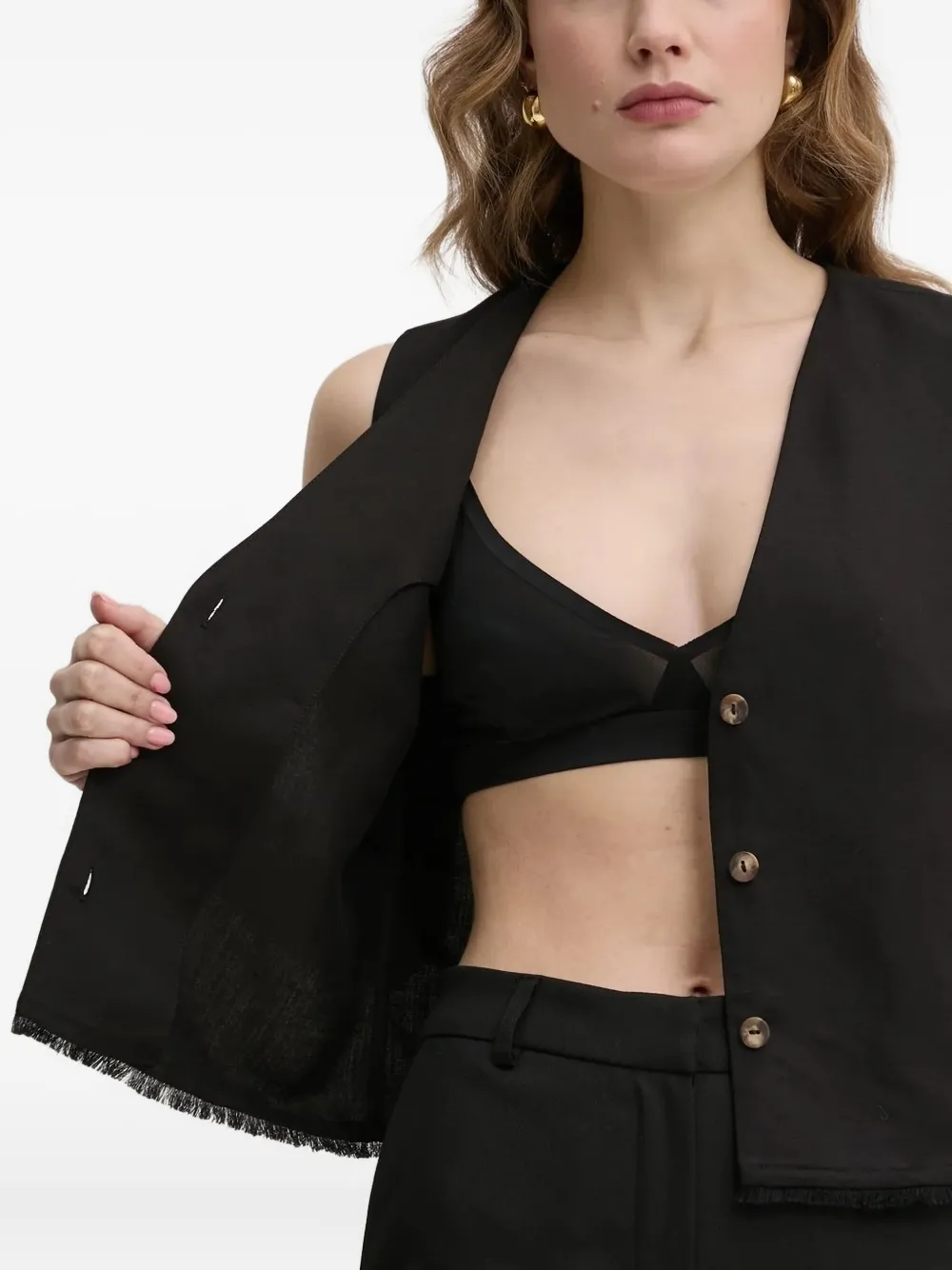 Топ на пуговицах с бахромой Ivy Oak, черный