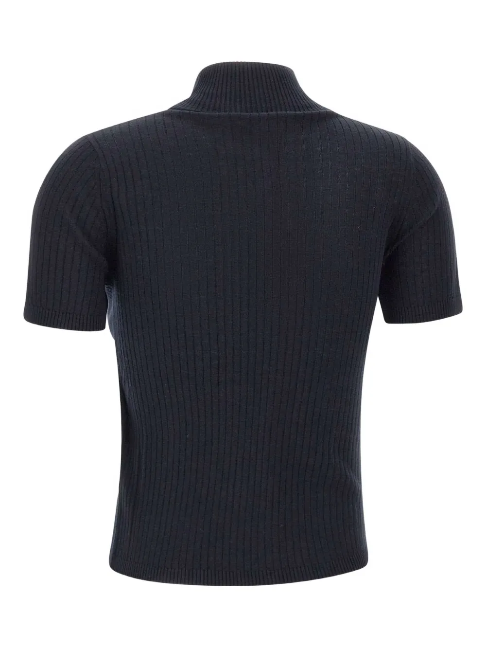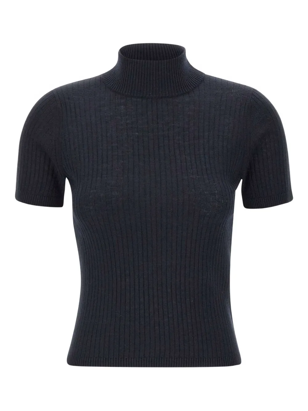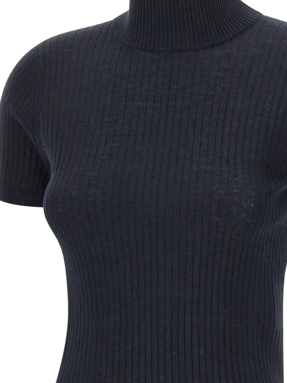 Топ в рубчик с высоким воротником Max Mara, черный 28 129₽