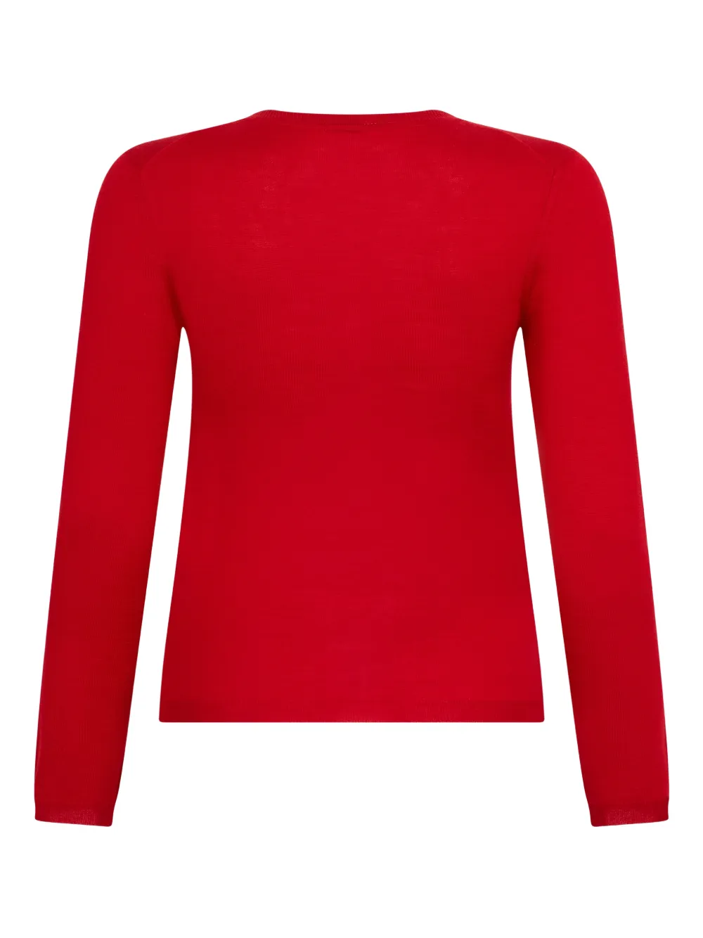Красный V-образный вырез, длинные рукава, ребристые манжеты и нижний край