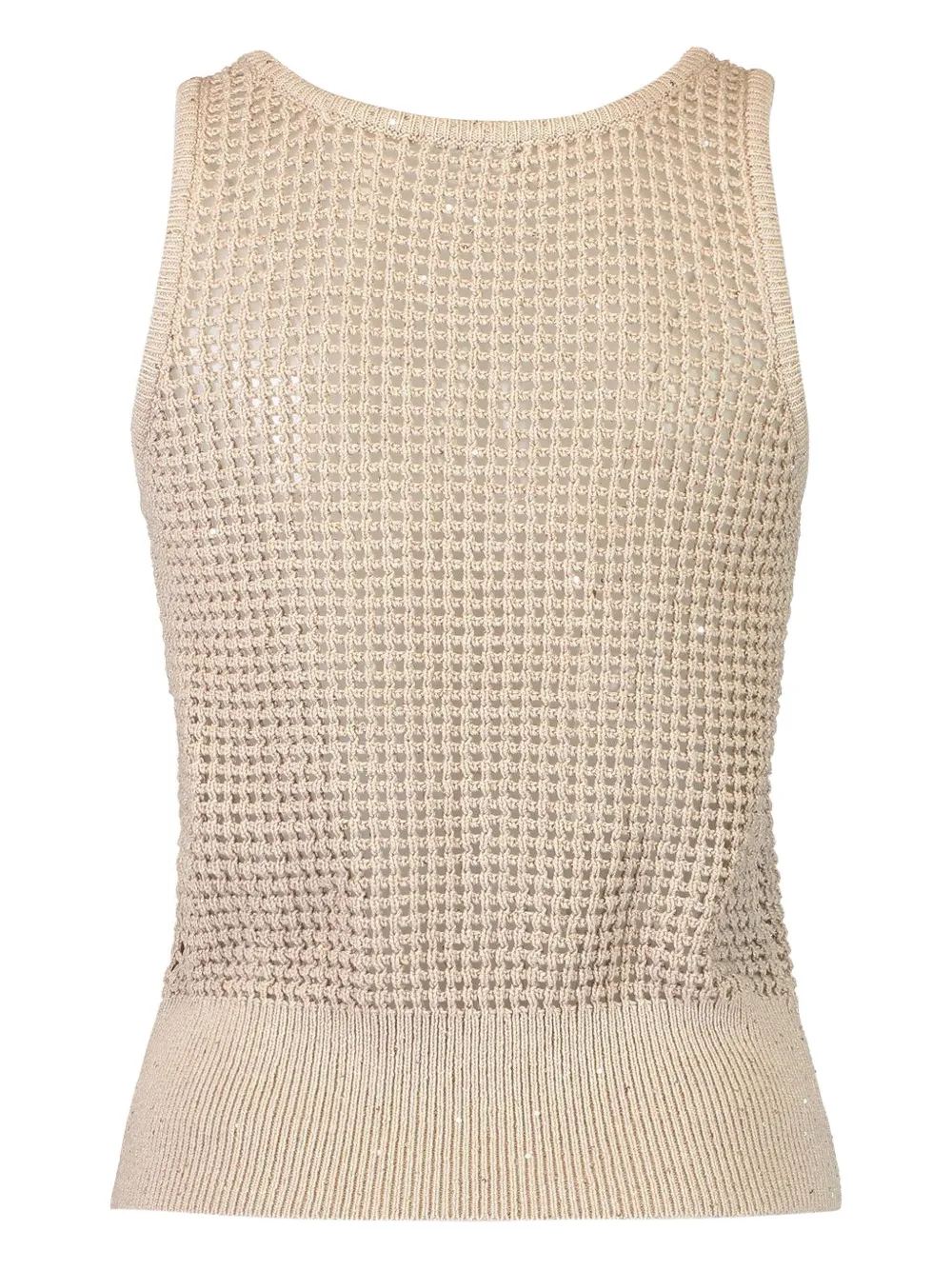 Бежевый топ с открытой вязкой, круглым вырезом, без рукавов и ребристыми краями