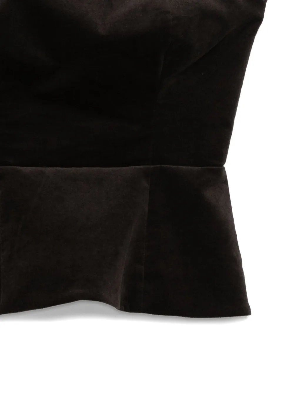 Темно-коричневый бархатистая текстура баска на подоле без бретелек скрытая застежка-молния приталенный лиф