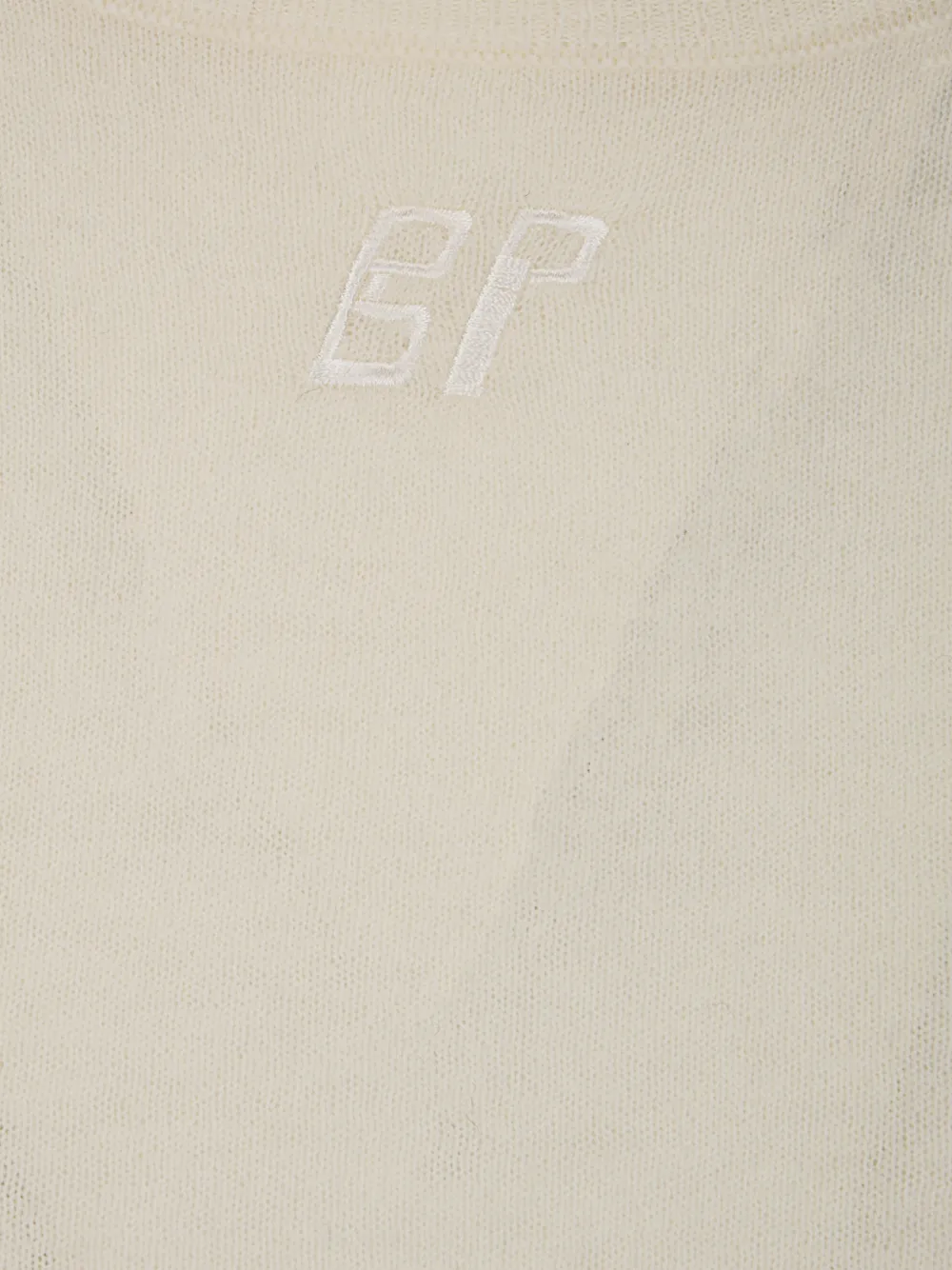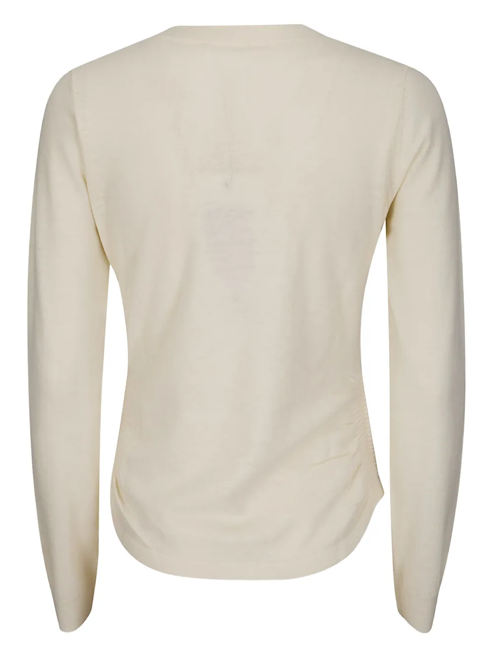 Кремовый пуловер из мериносовой шерсти с вышивкой, длинными рукавами, круглым вырезом и драпировкой.