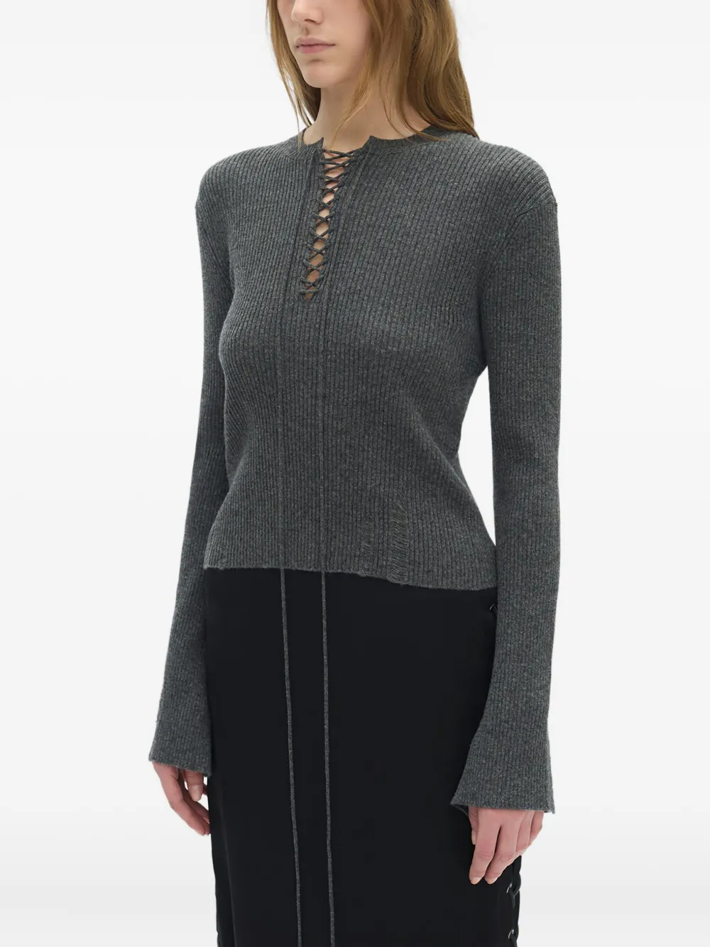 Топ в рубчик с эффектом поношенности Ann Demeulemeester, серый