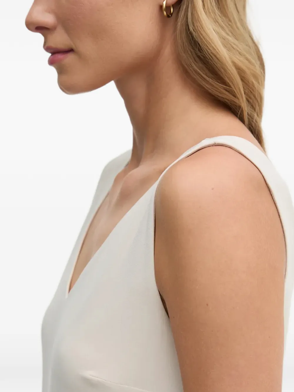 Айвори (слоновая кость) топ без рукавов с V-образным вырезом и полупрозрачным подолом