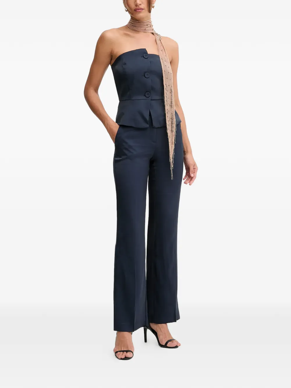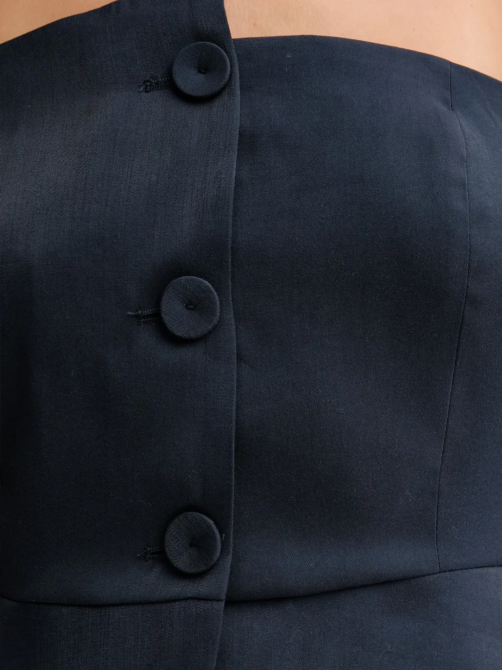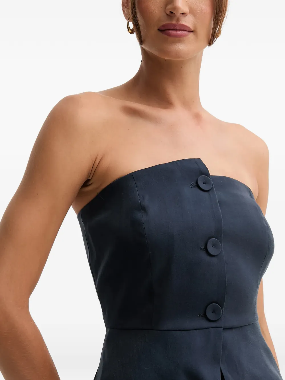 Темно-синее платье без бретелек на пуговицах
