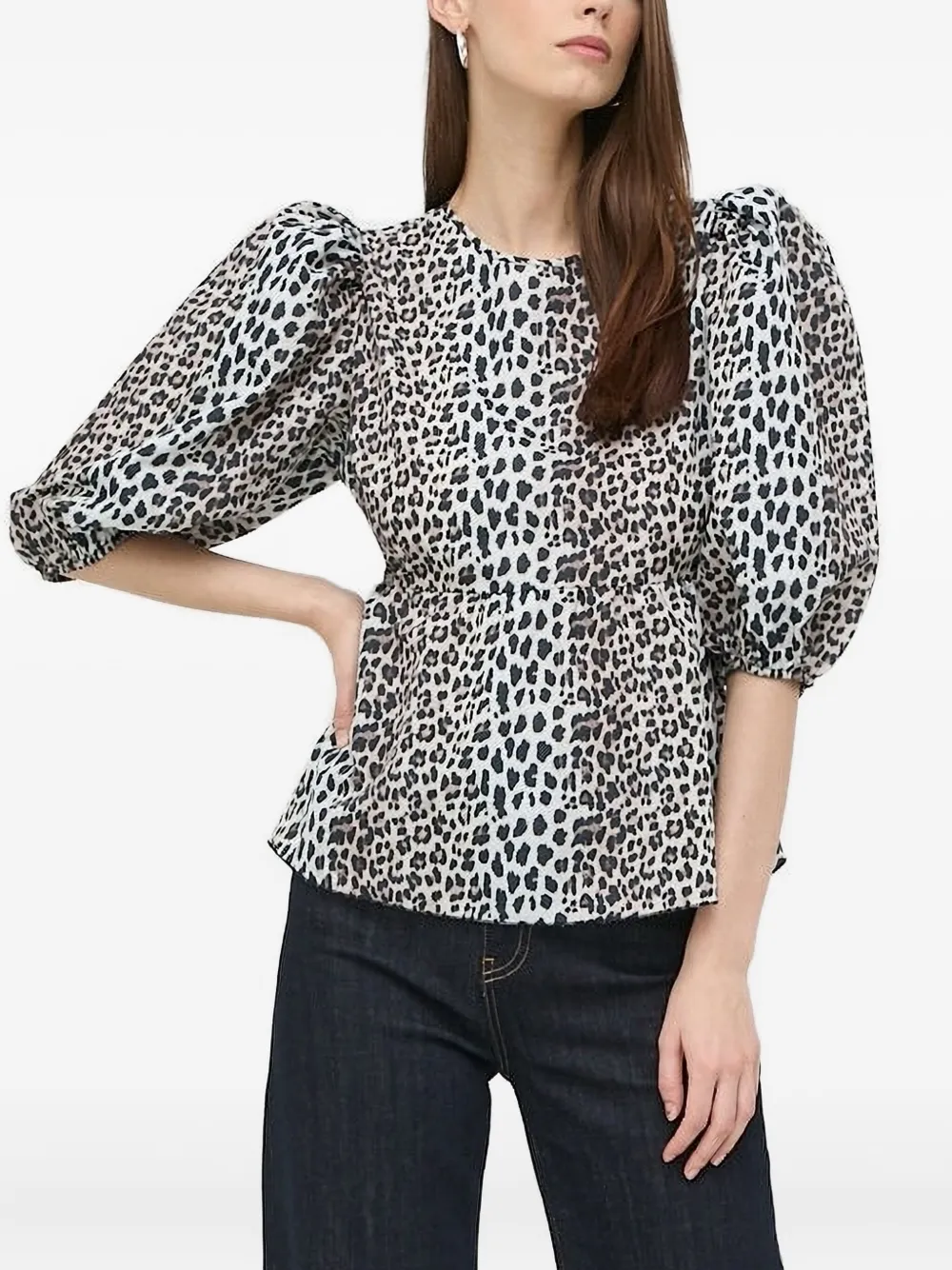 Топ с объемными рукавами и леопардовым принтом Notes Du Nord, белый