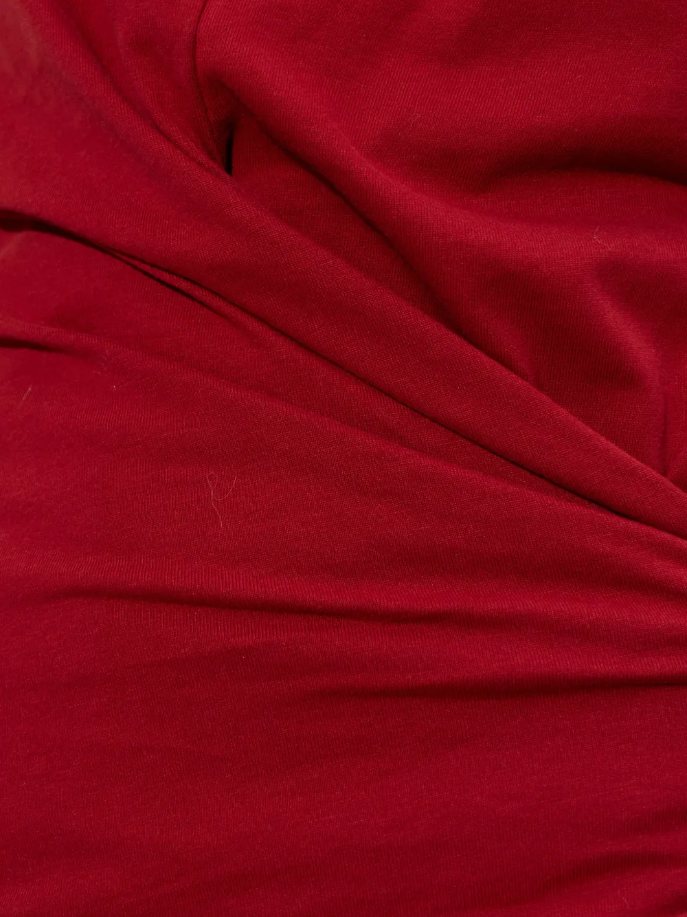 Вишнево-красный драпированный дизайн, короткие рукава, круглый вырез, изогнутый подол