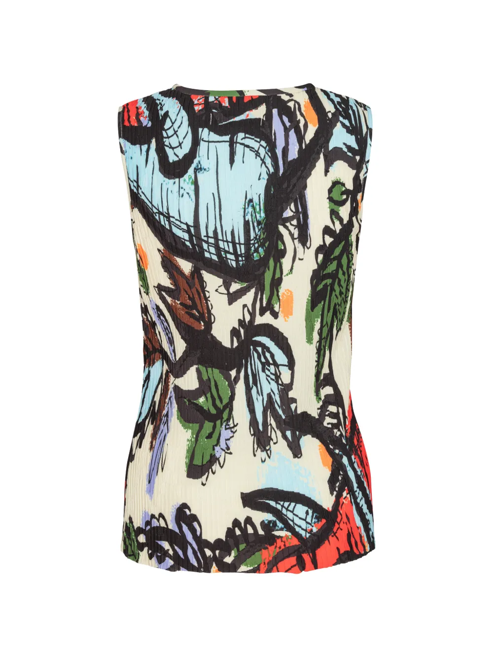 Светло-бежевый топ без рукавов с цветочным принтом, круглым вырезом и рубчатой текстурой