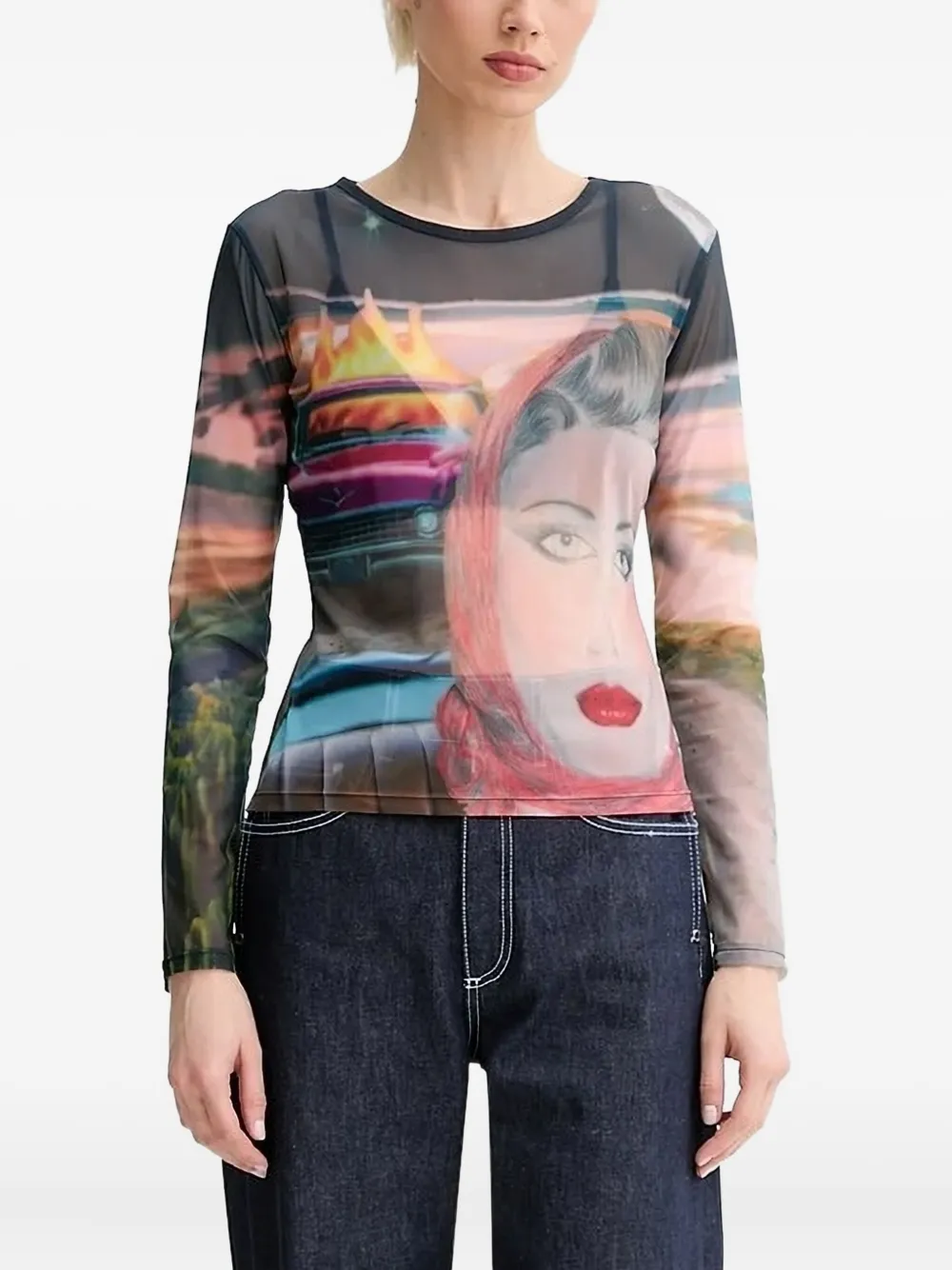 Сетчатый топ с принтом Sunnei, черный