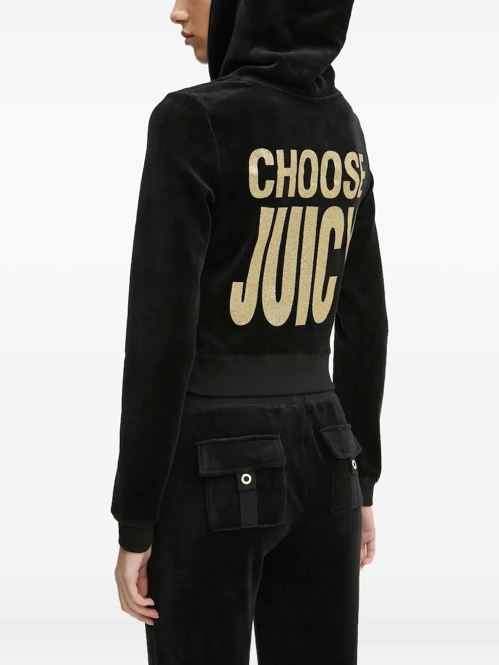 Велюровый топ на молнии с капюшоном Juicy Couture, черный