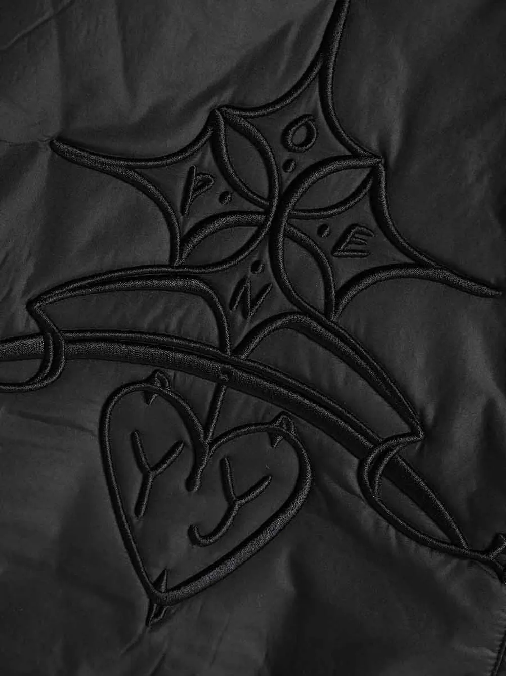 Черный стеганый эффект вышивка с эмблемой застежка-молния сзади корсетный дизайн