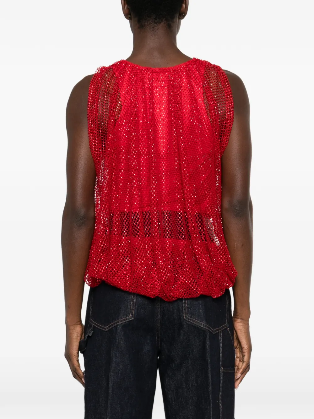 Красная сетчатая накидка без рукавов с круглым вырезом