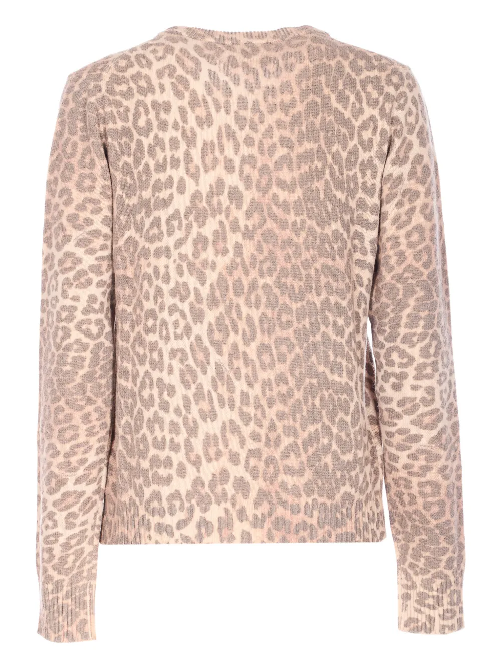 Коричневый жаккард с леопардовым узором, логотип, круглый вырез, длинные рукава
