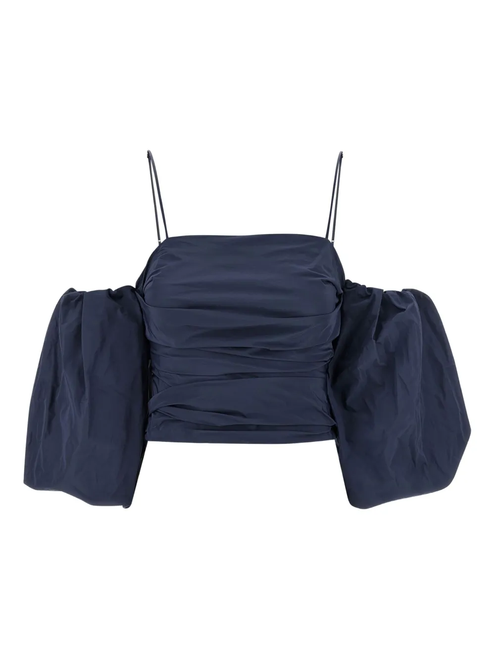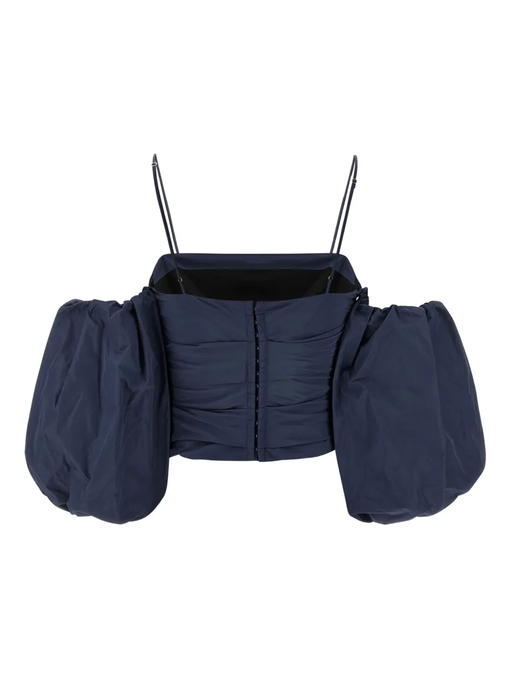 Синий тафта регулируемые бретели плиссированная отделка застежка на крючок съемные рукава эластичные манжеты