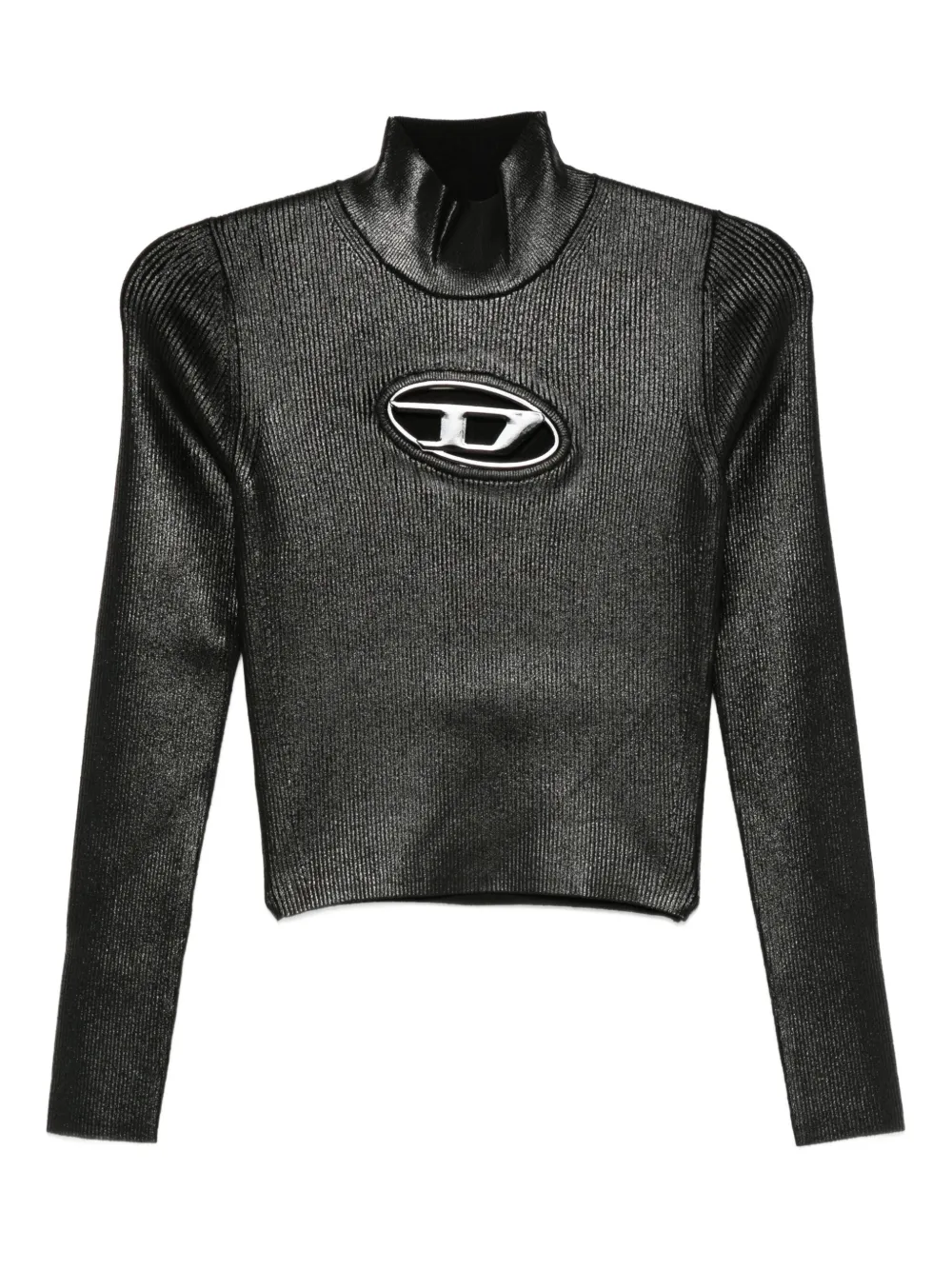 Топ в рубчик с высоким воротником Diesel, черный