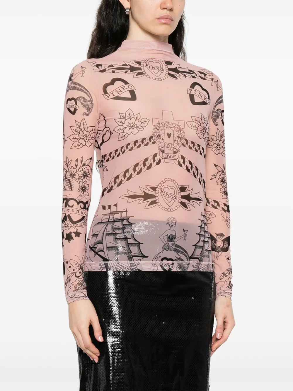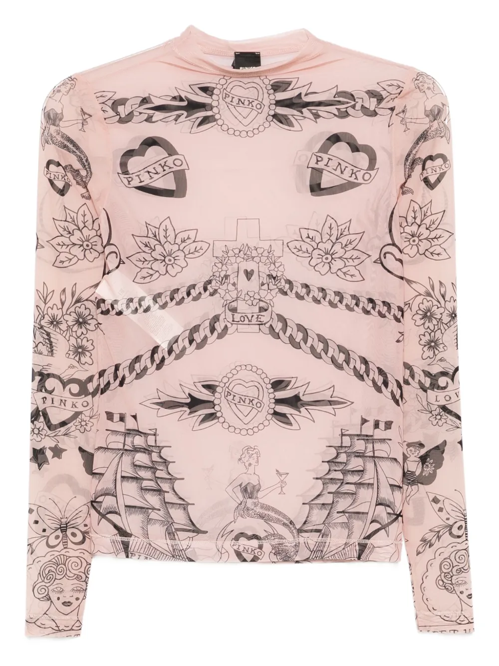 Сетчатый топ с графичным принтом Pinko, нейтральный