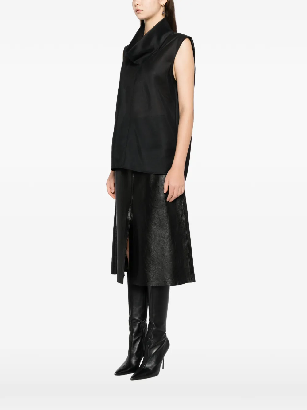 Черный безрукавный топ с асимметричным подолом и разрезами по бокам
