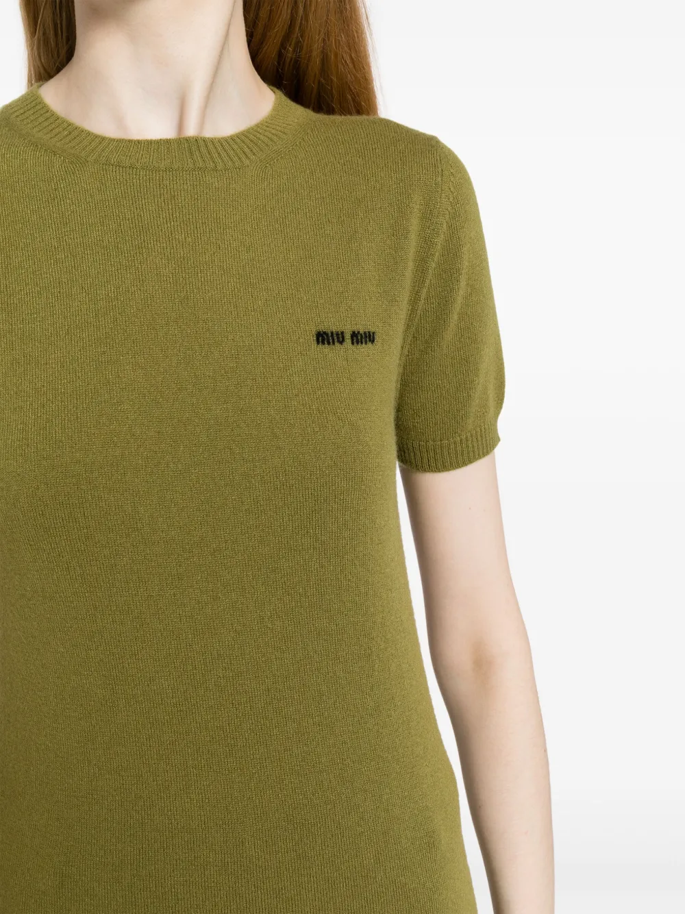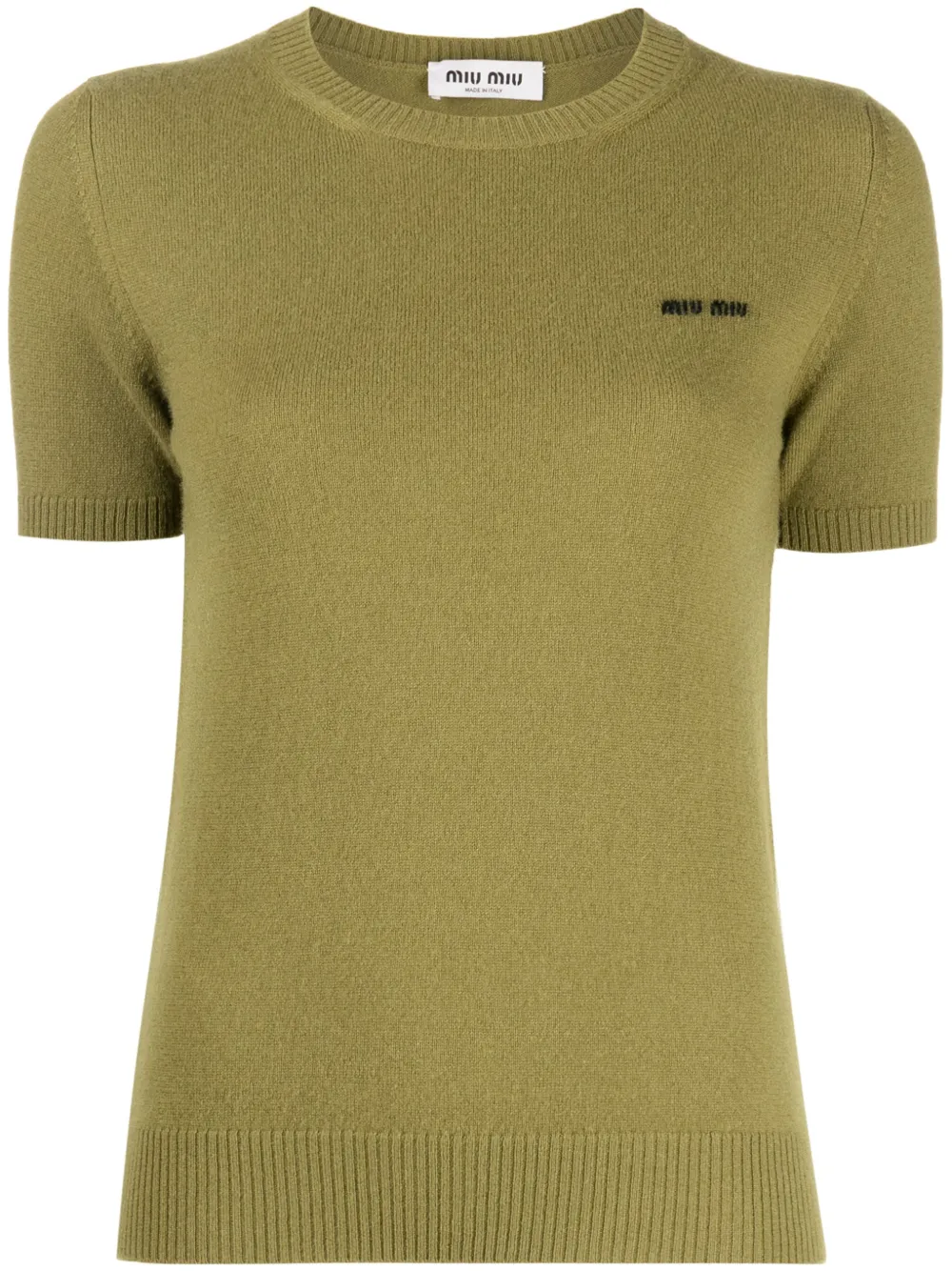 Кашемировый топ с логотипом Miu Miu, зеленый