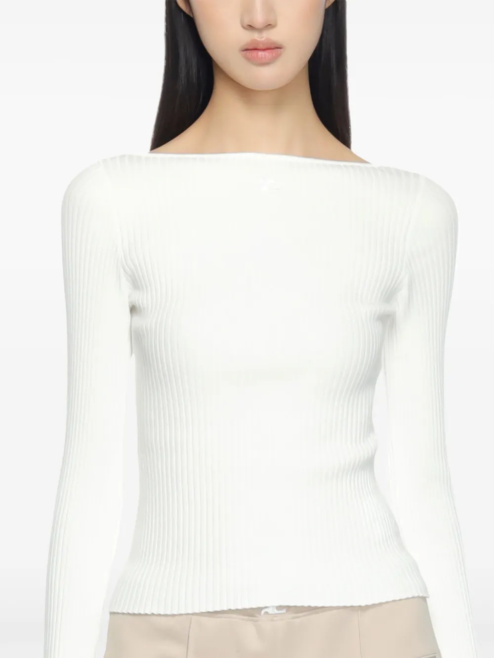 Топ в рубчик с U-образным вырезом Courrèges, белый