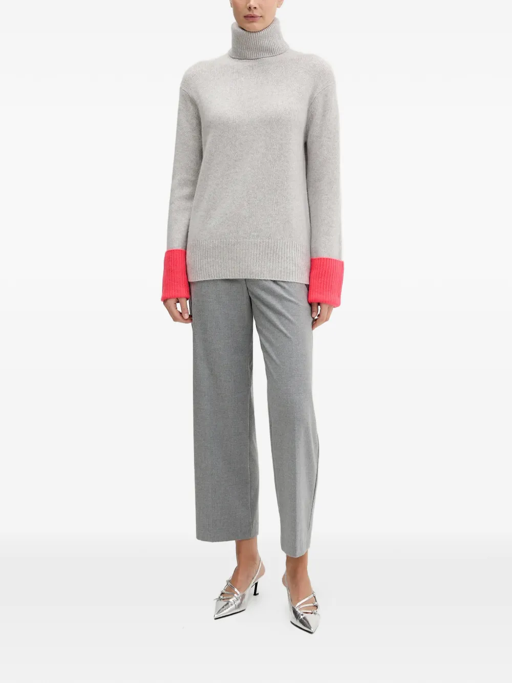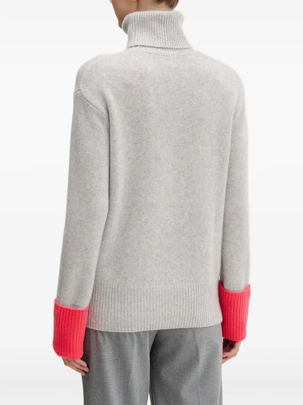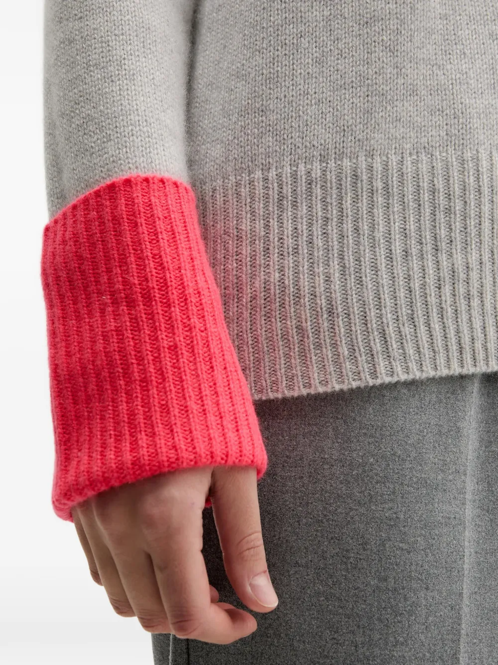Серый гольф с воротником, ребристыми отделками, длинными рукавами и контрастными манжетами
