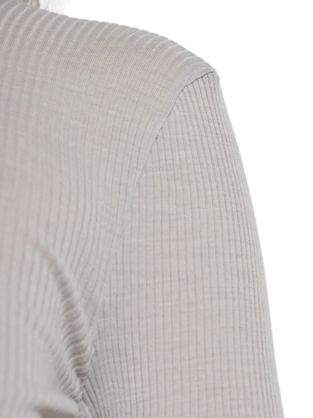 Светло-серый рубчатый трикотаж с высоким воротом и длинными рукавами