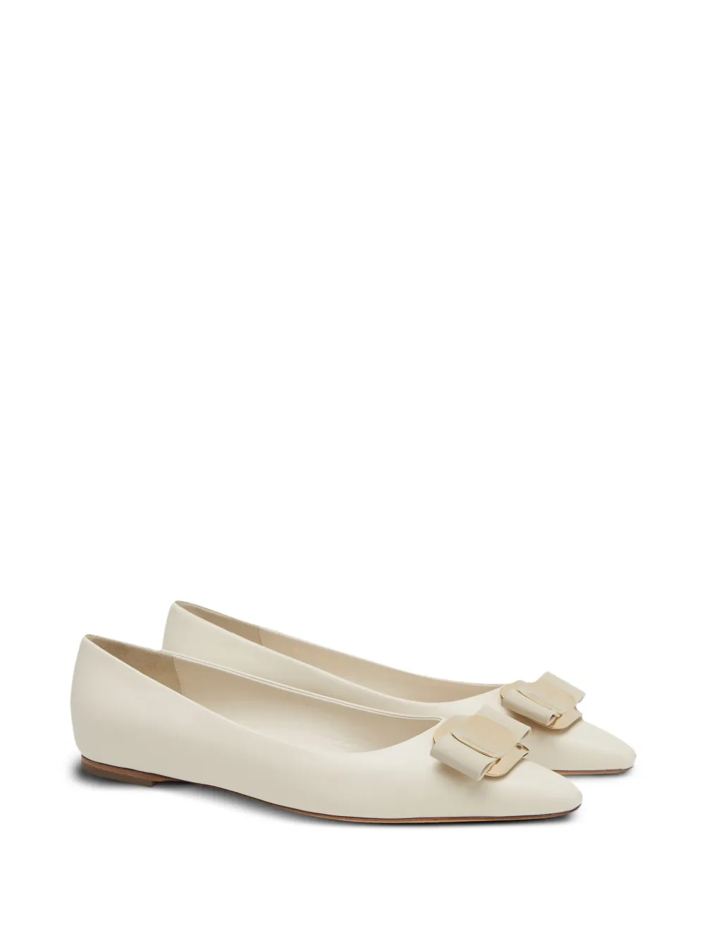 Балетки Vara из кремово-белой наппа-кожи, пряжка Vara, через которую бантик проходит сквозь золотистый металл, каблук 0,5 см. 100% кожа теленка.