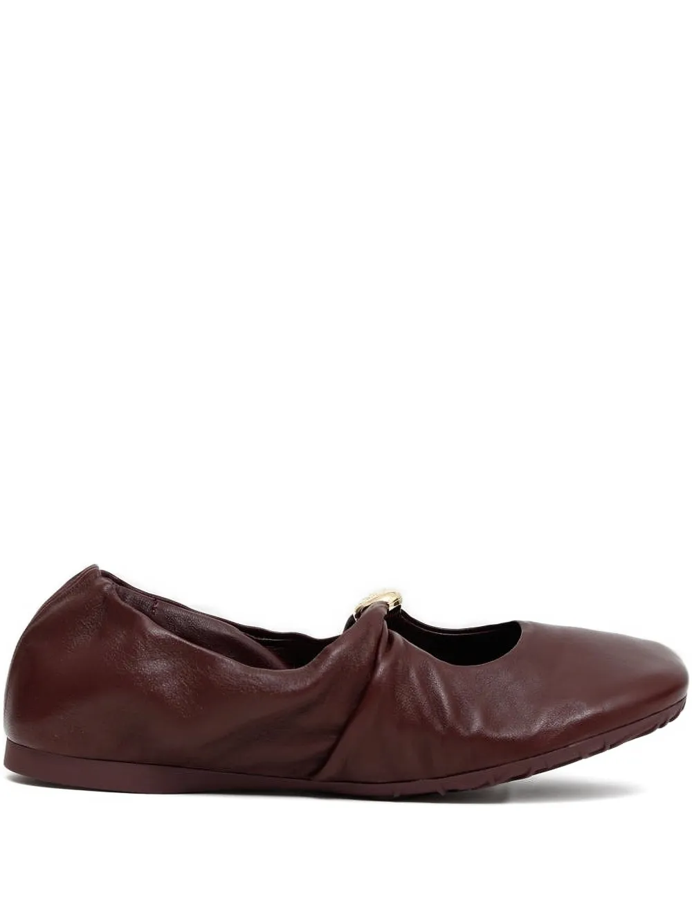 Бордовый кожаный верх сборка украшение в виде пряжки круглый носок плоская подошва