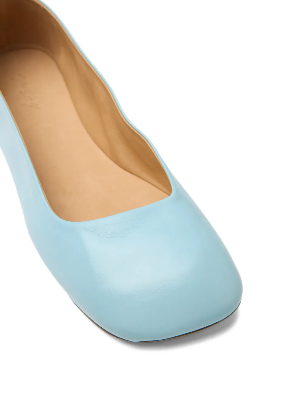 Светло-голубые с круглым носком, на плоской подошве, без застежки