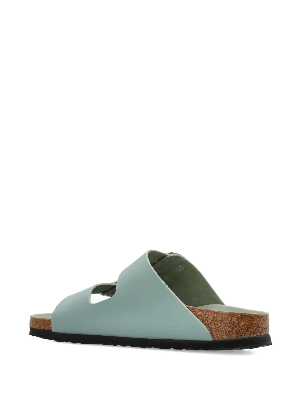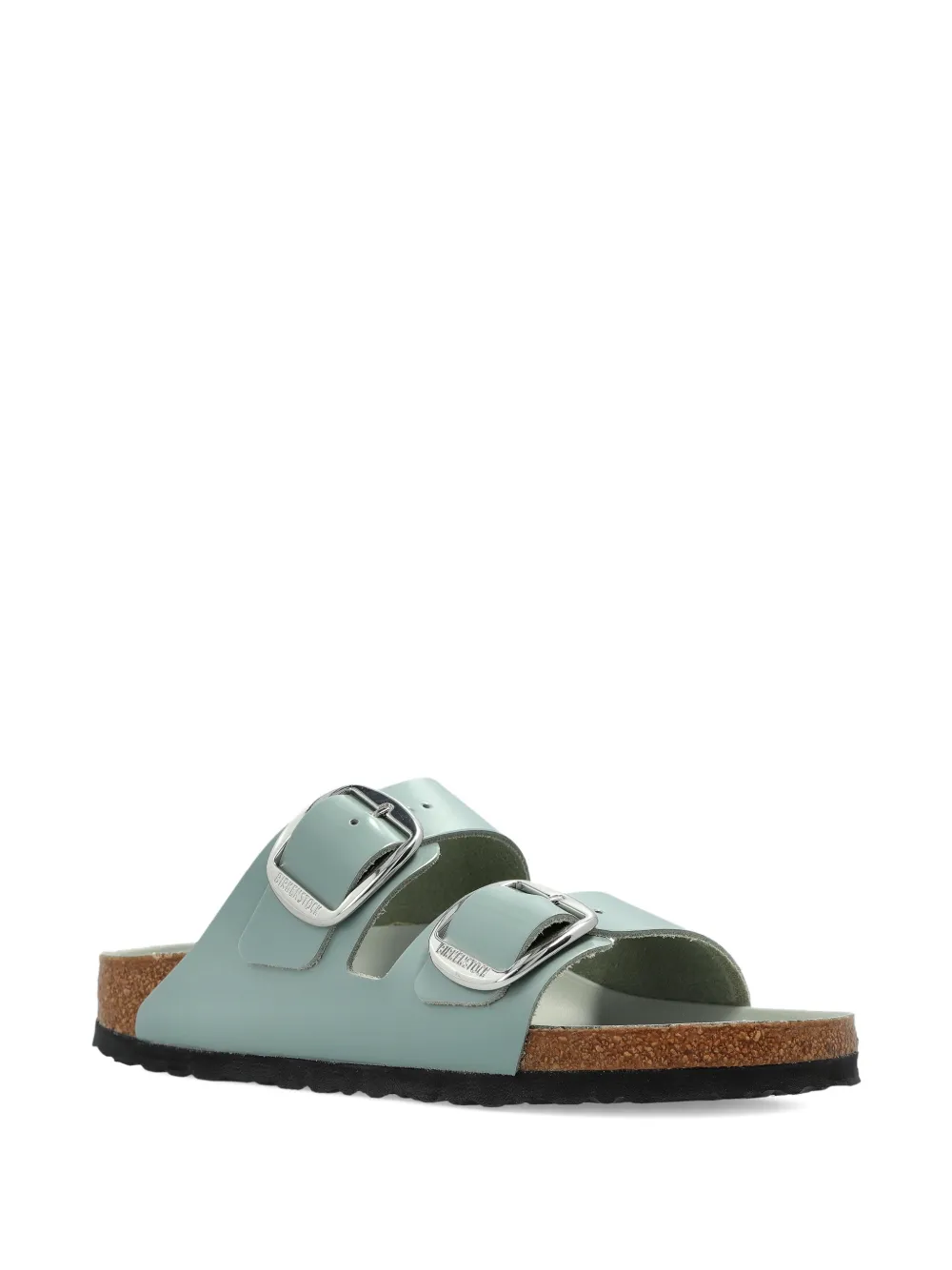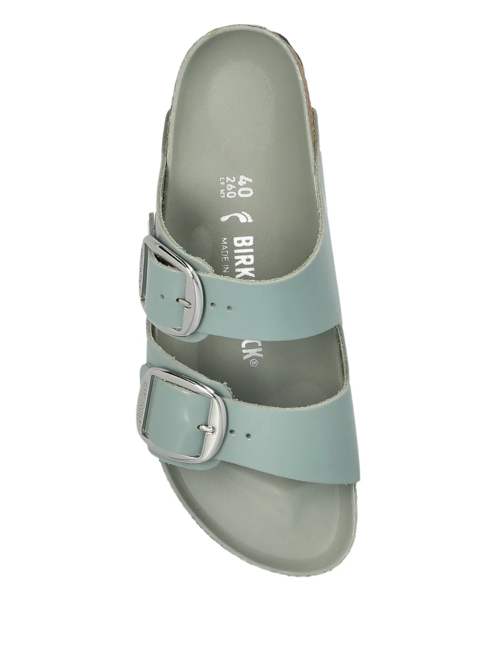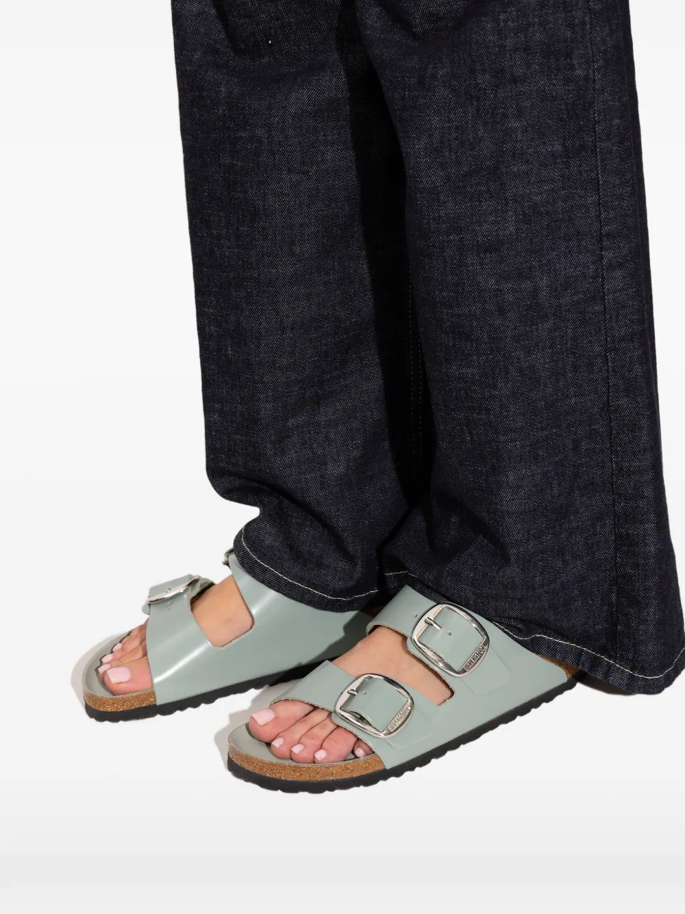 Кожаные сандалии шалфейного цвета с двумя ремешками, пряжками, открытым носком и плоской подошвой