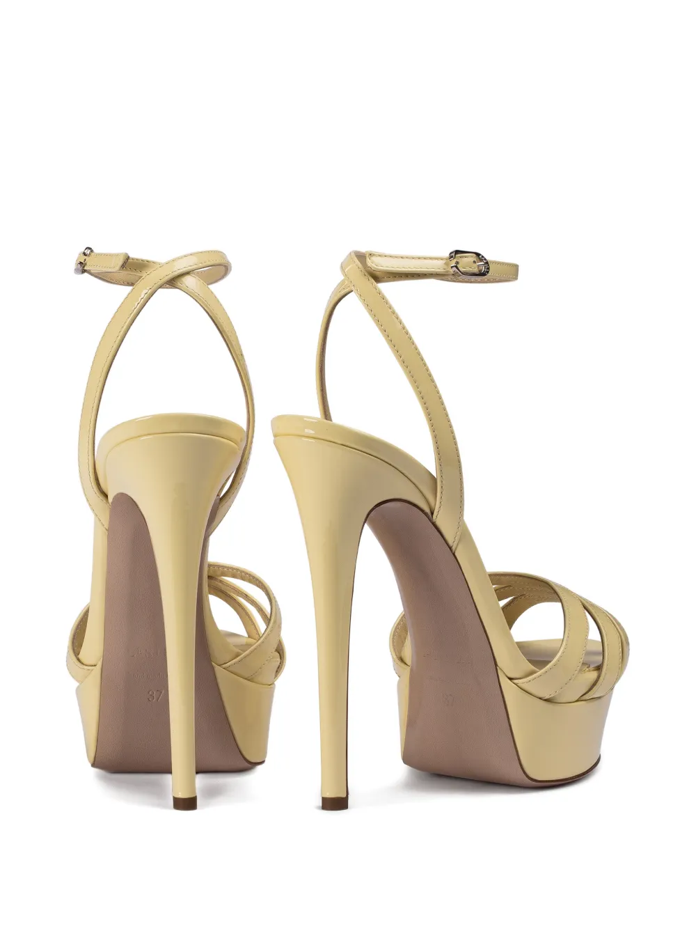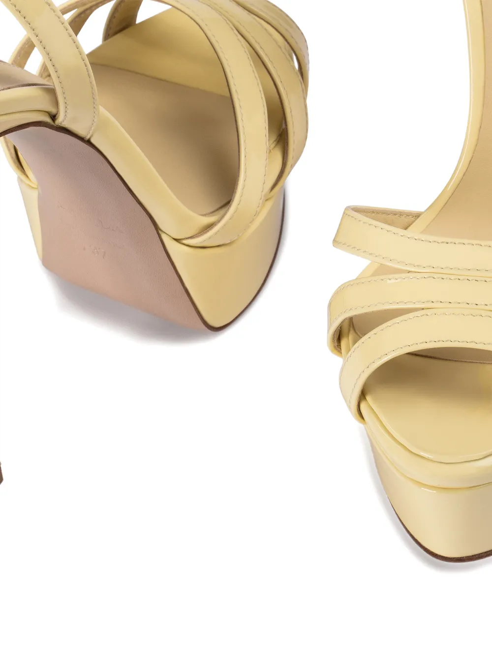 Желтые лакированные босоножки на платформе с ремешками, застежкой-пряжкой и ремешком на щиколотке