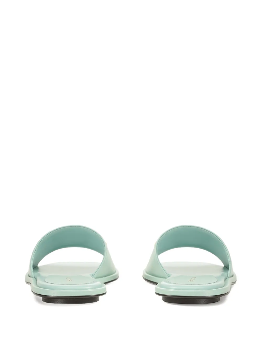 Цвет акваминт, фурнитура под золото, табличка с логотипом, кожаная подошва, открытый носок, модель без застежек