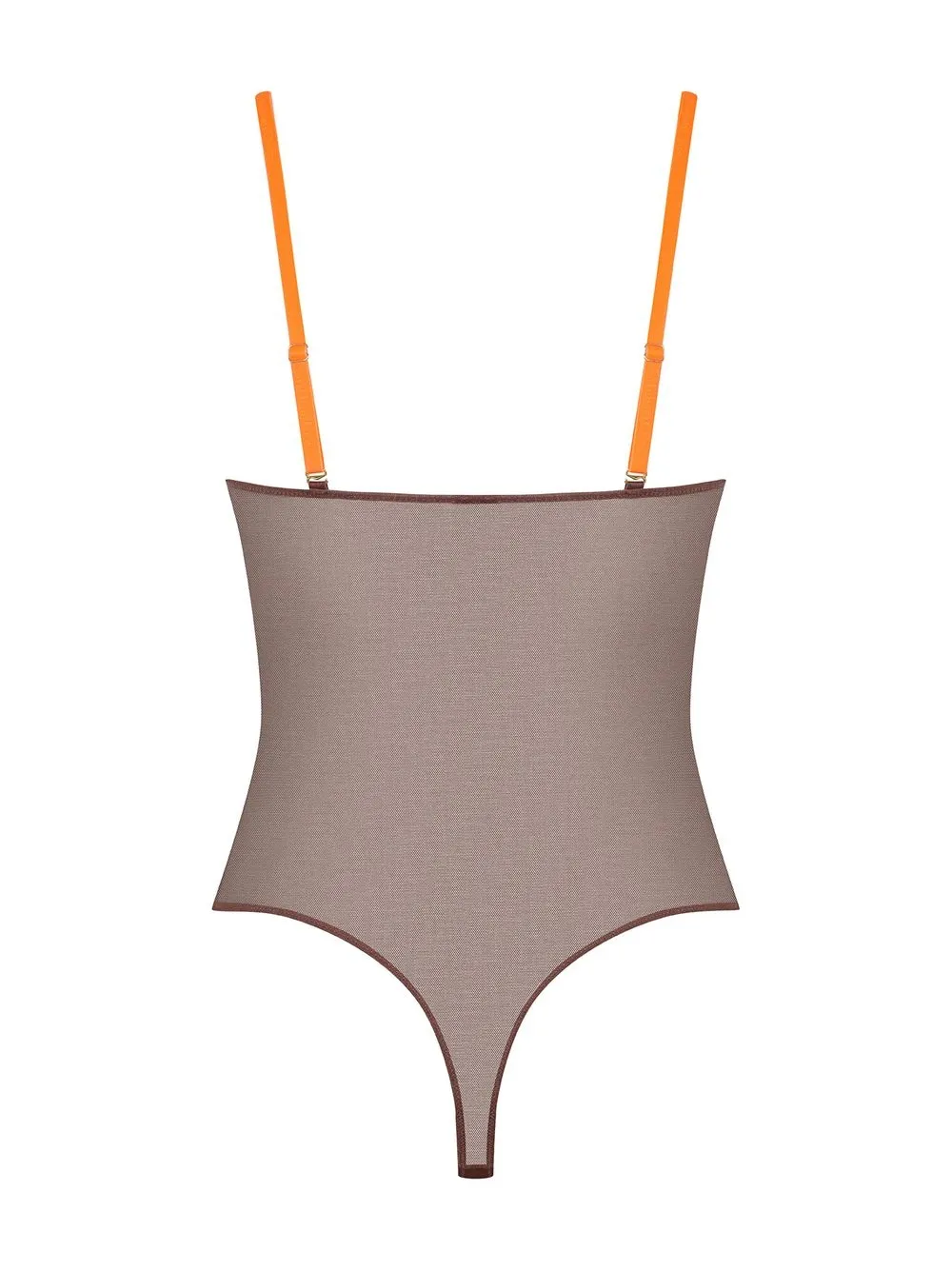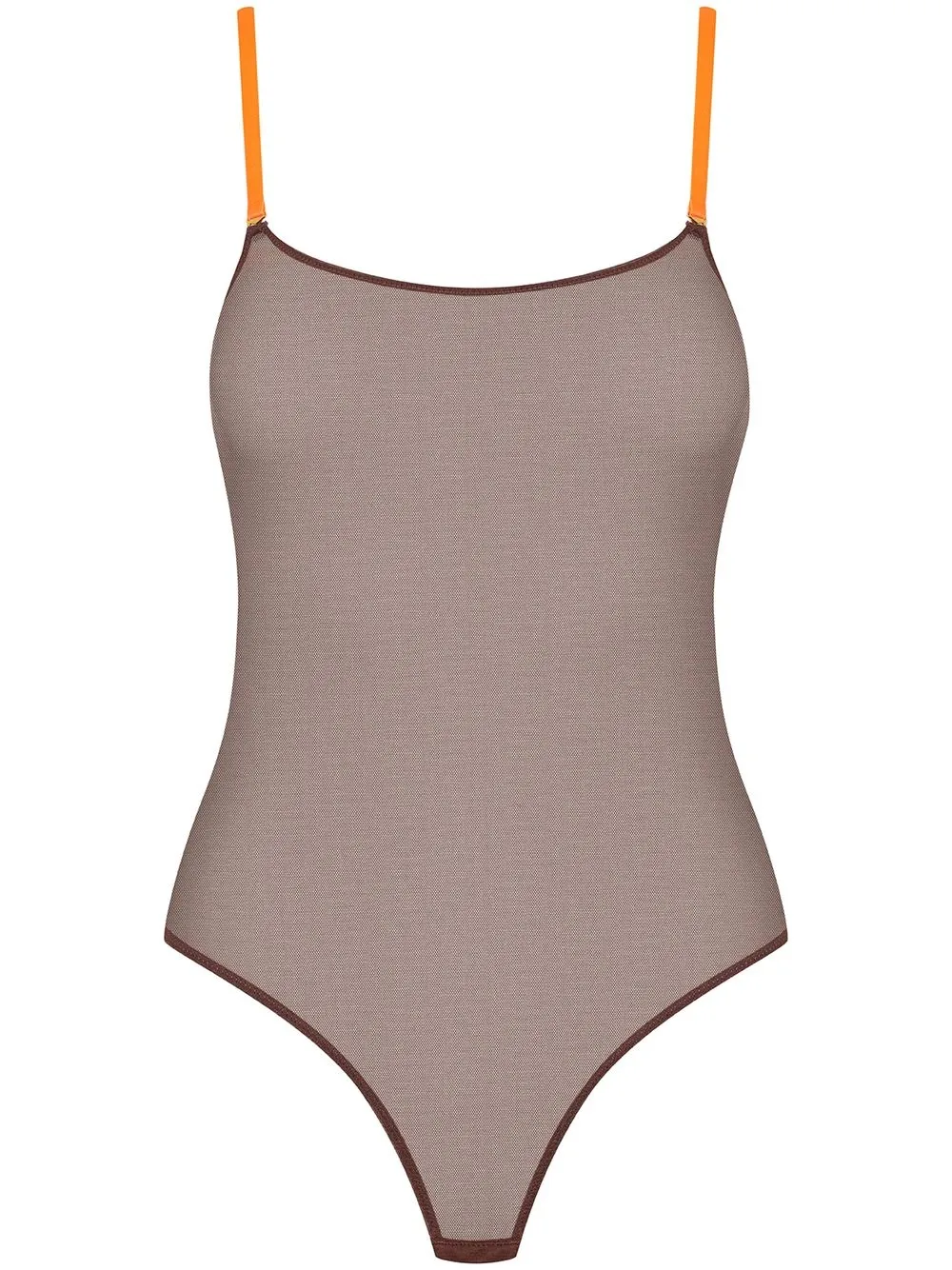 Сетчатое боди с контрастными бретелями Maison Close, коричневый