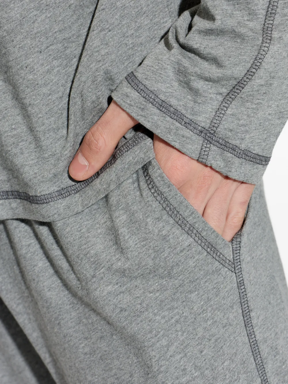 Серый цвет, эластичный пояс, круглый вырез, длинные рукава, логотип