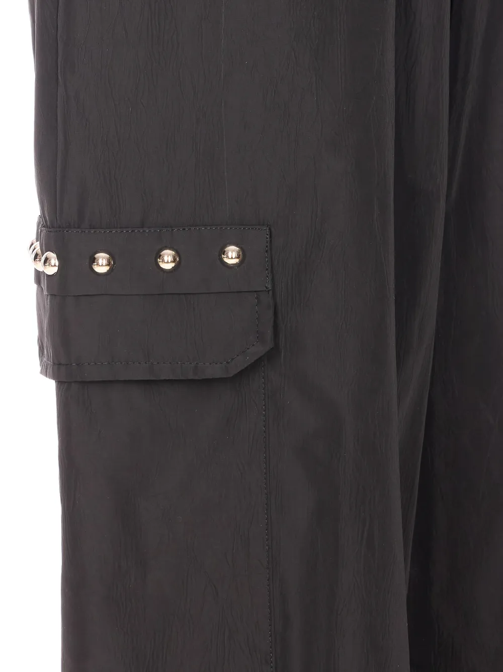 Черные брюки с эластичным поясом, карманами и украшением в виде заклепок