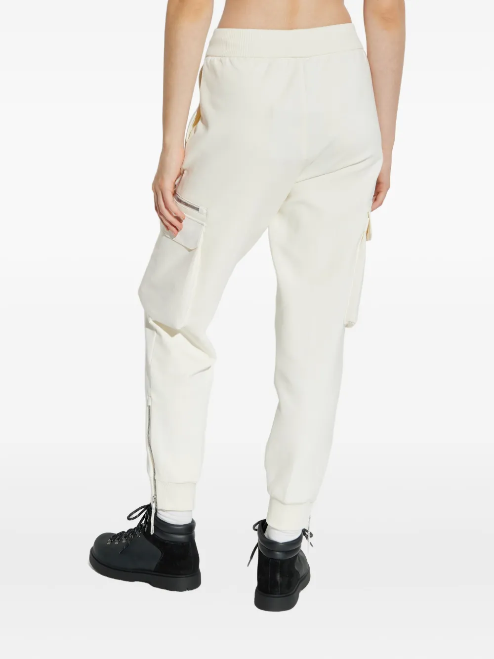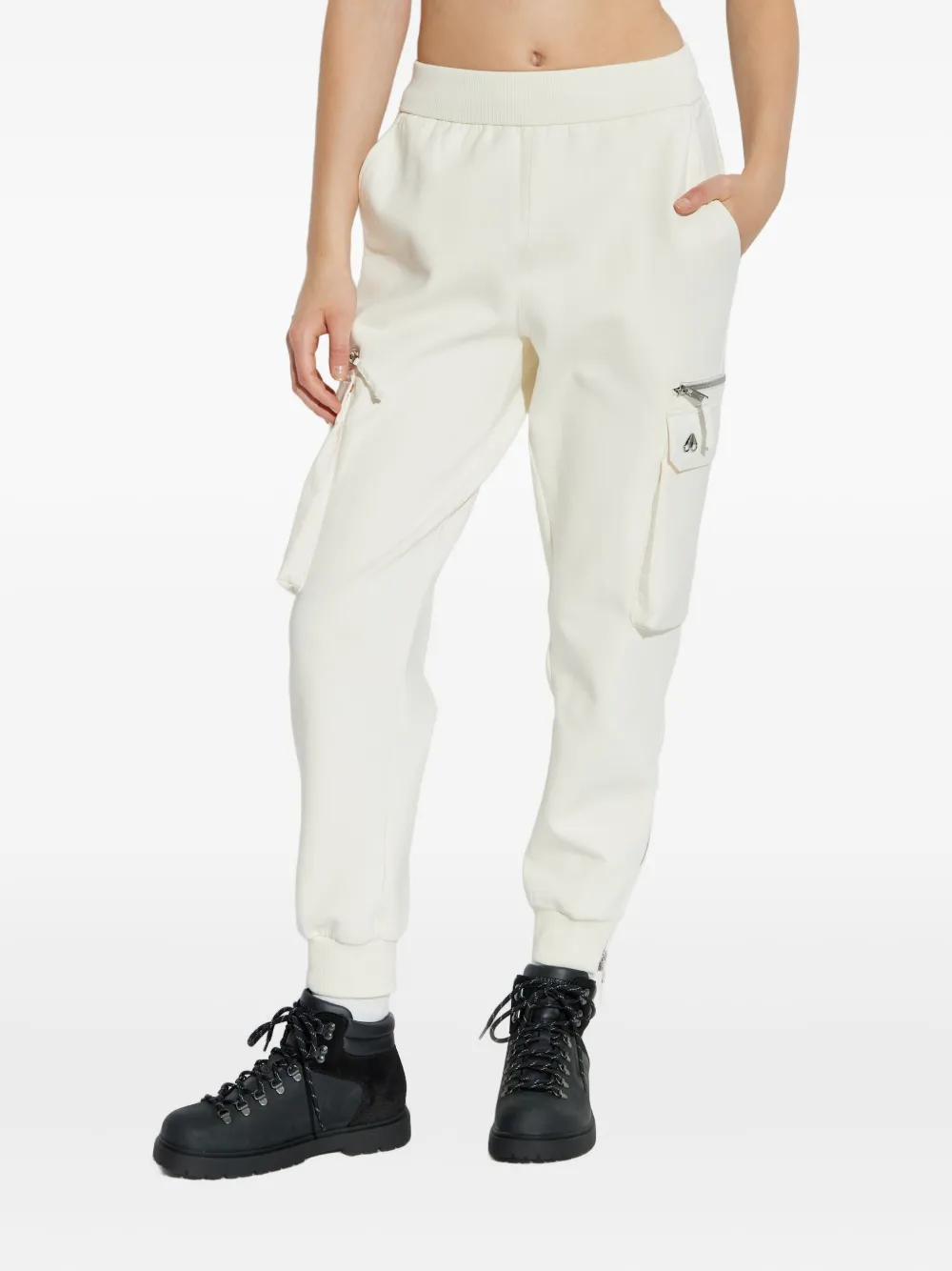 Бежевый цвет, боковые накладные карманы, эластичный пояс, эластичные манжеты, металлическая нашивка с логотипом