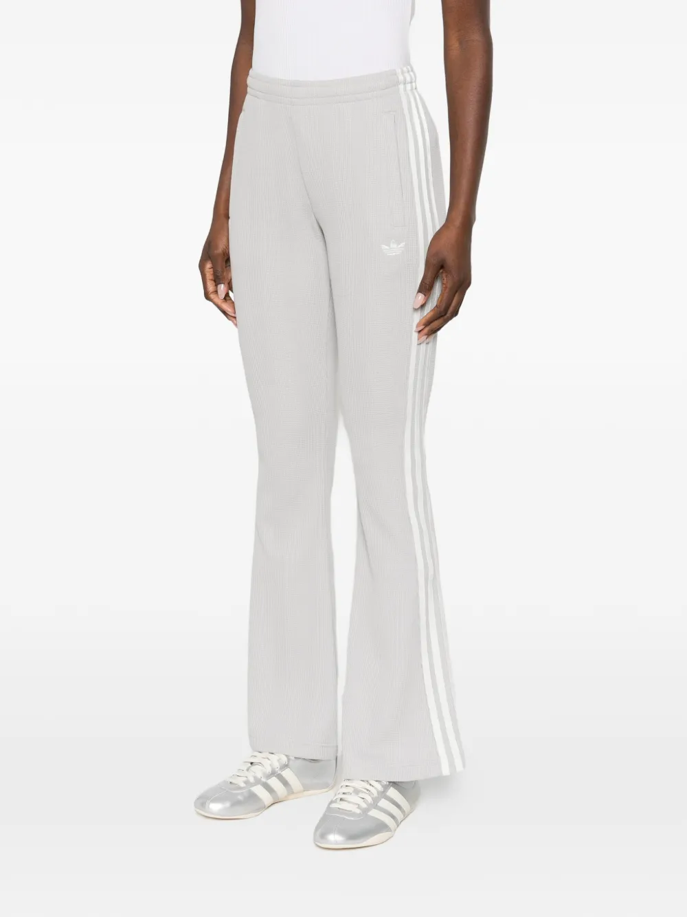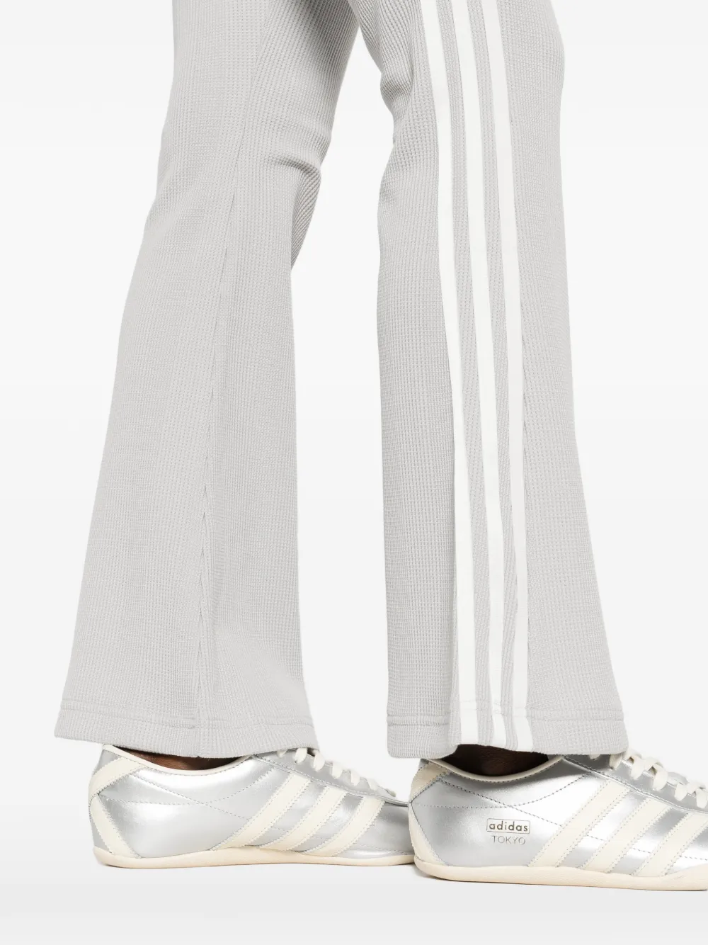 Светло-серые ребристые брюки клеш с полосками и логотипом