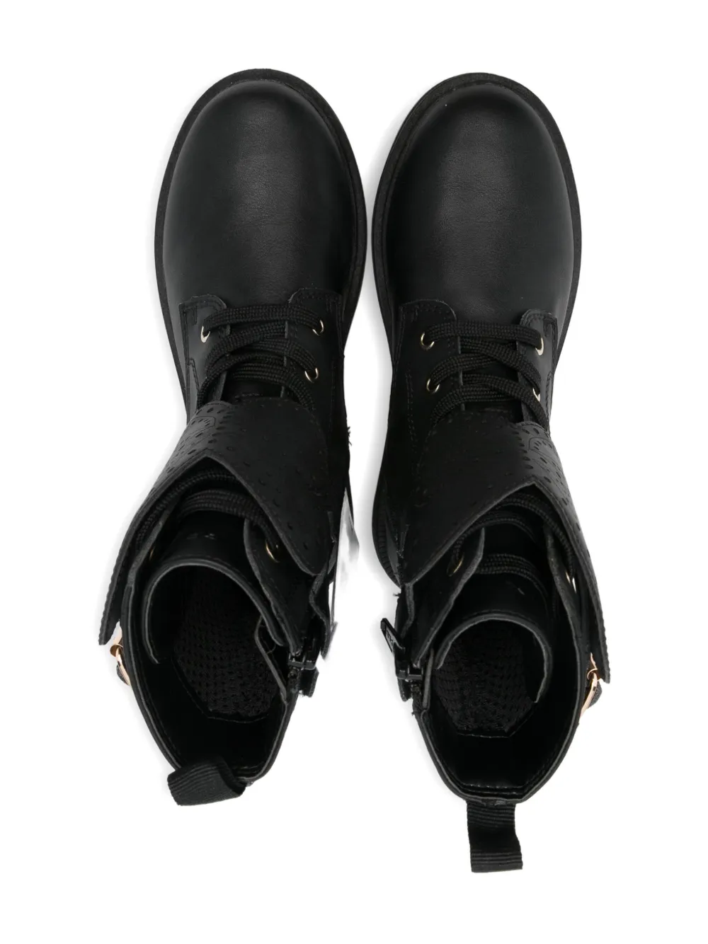 Черный перфорация застежка-пряжка шнуровка спереди боковая застежка-молния рифленая подошва