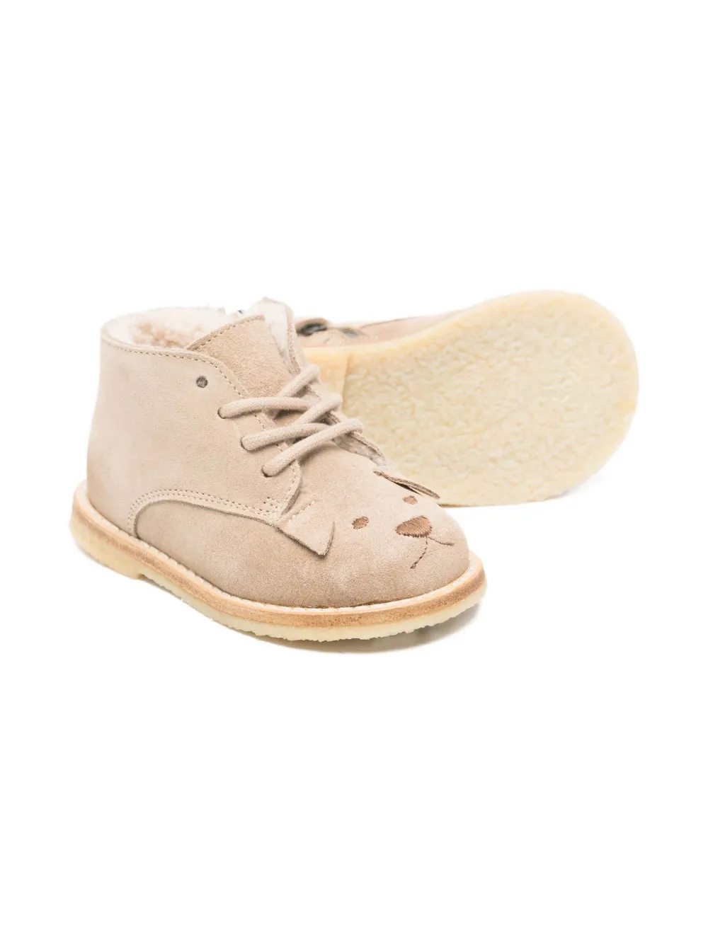 Бежевые замша вышивка с изображением собаки застежка на шнуровке круглый нос резиновая подошва