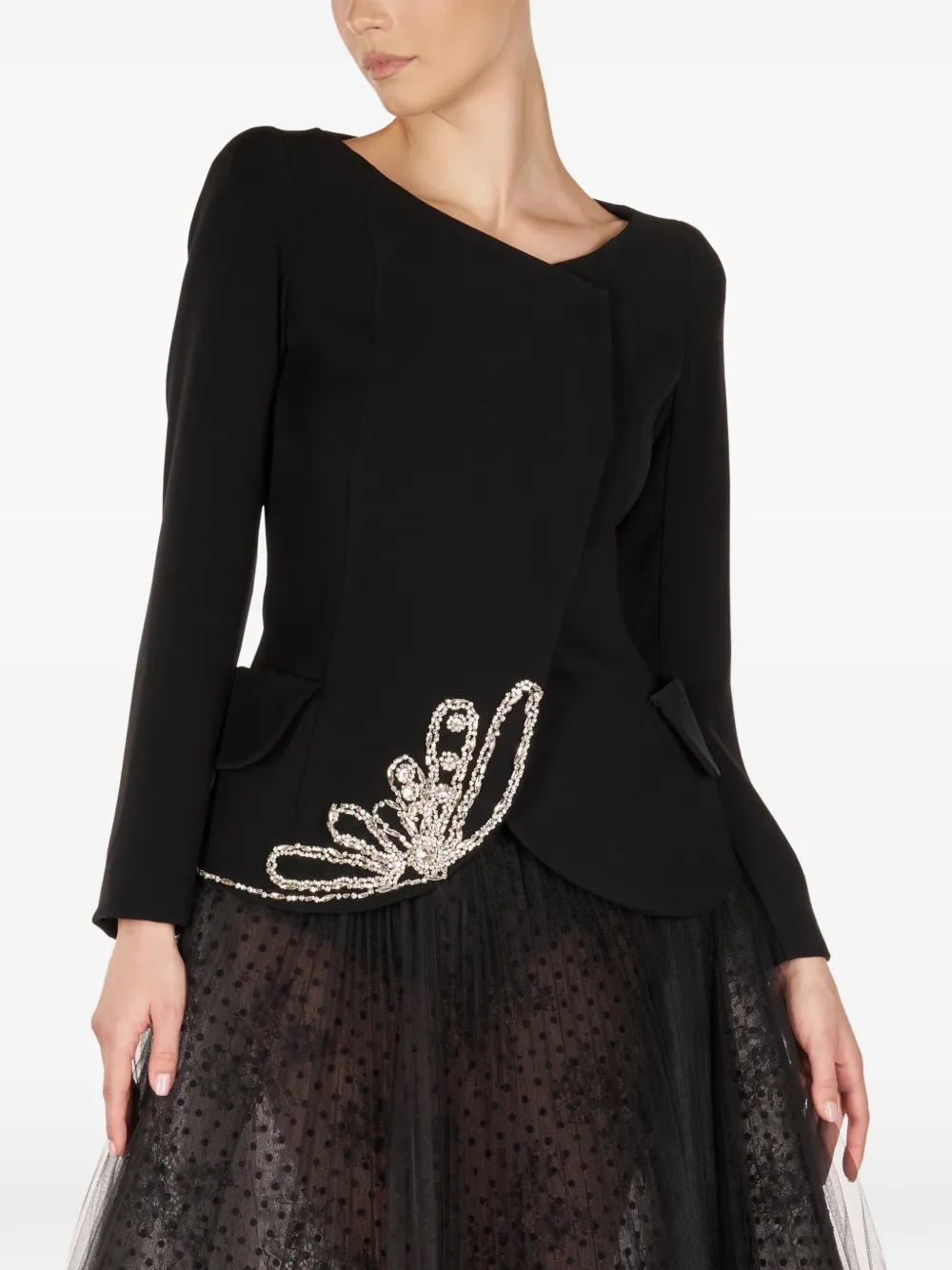 Черное платье с отделкой, панельным дизайном, длинными рукавами, круглым вырезом и юбкой миди из тюля