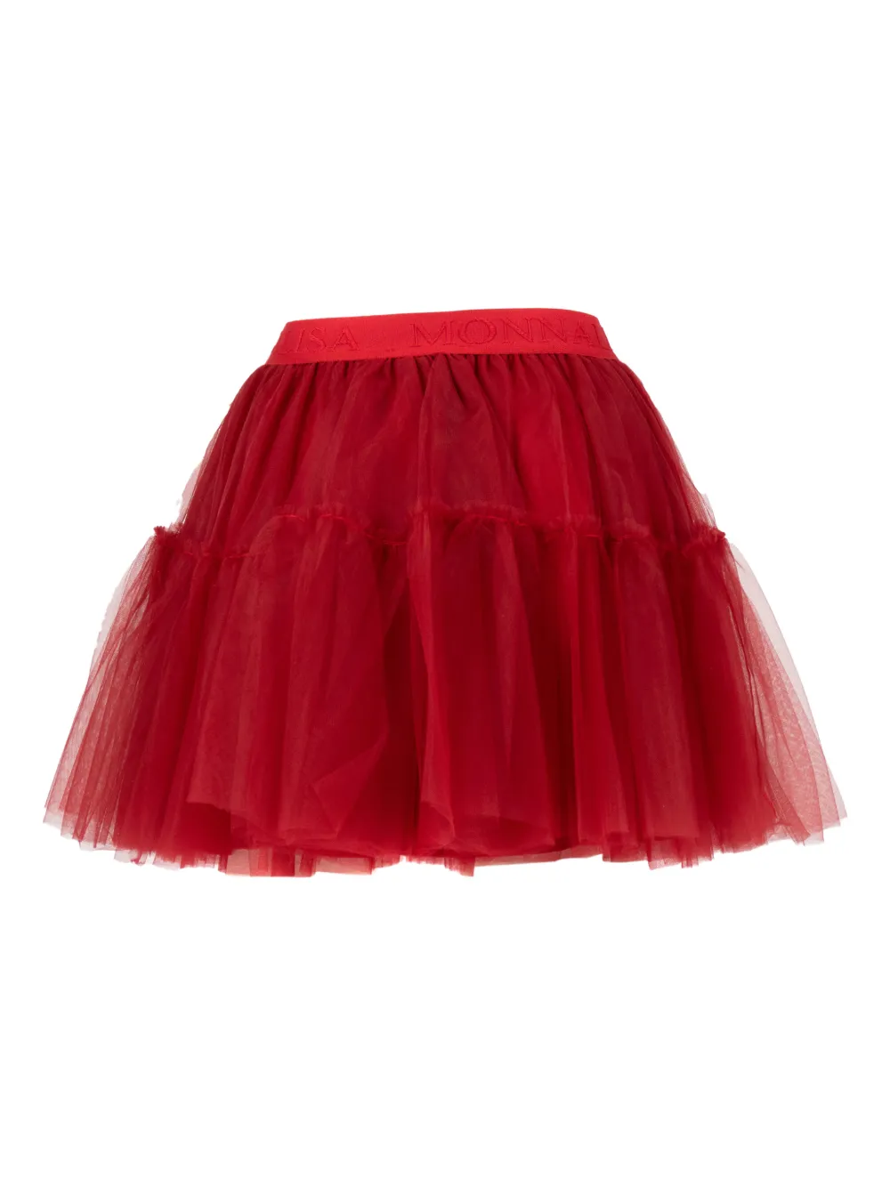 Красный тюль, эластичный пояс, логотип