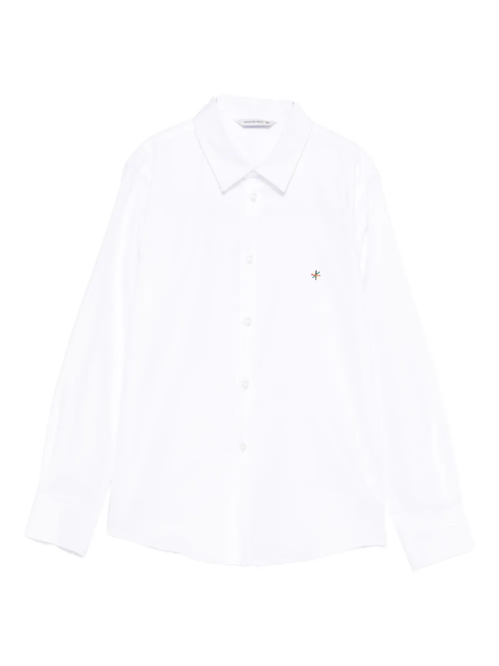 Белая рубашка с вышивкой, застежкой на пуговицы, длинными рукавами и классическим воротником