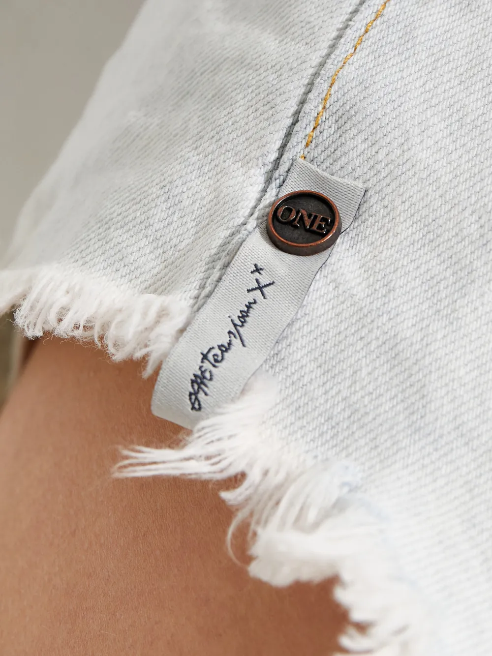 Синий цвет, пять карманов, шлевки для ремня, асимметричный нижний край, необработанные края