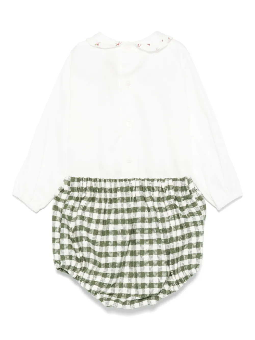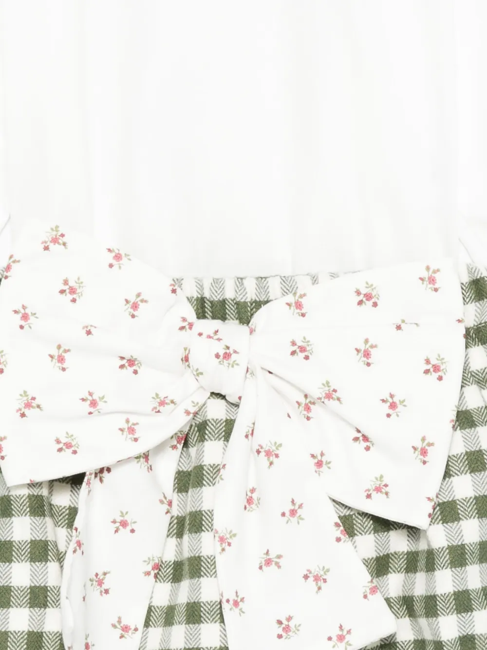 Зеленый цветочный принт воротник Питер Пэн клетчатый узор деталь в виде банта длинные рукава