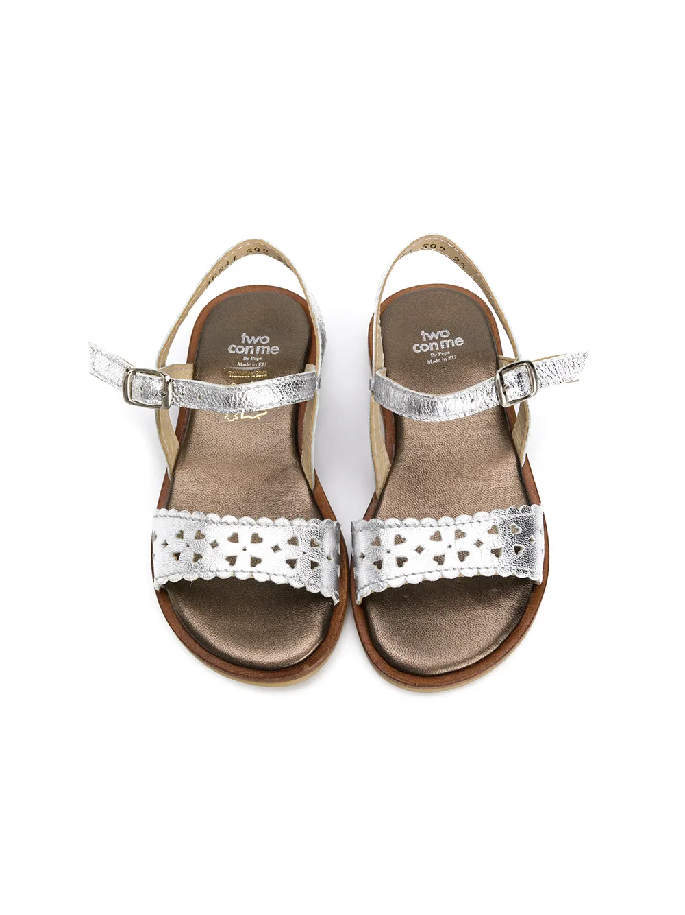 Сандалии с прорезями от Pèpè. Открытый носок, открытая пятка и плоская подошва. Цвет: серебристый.