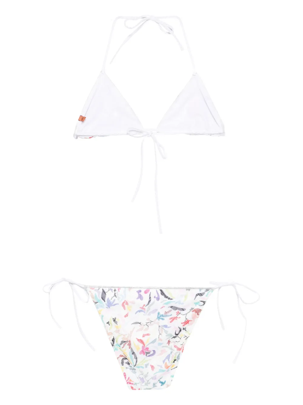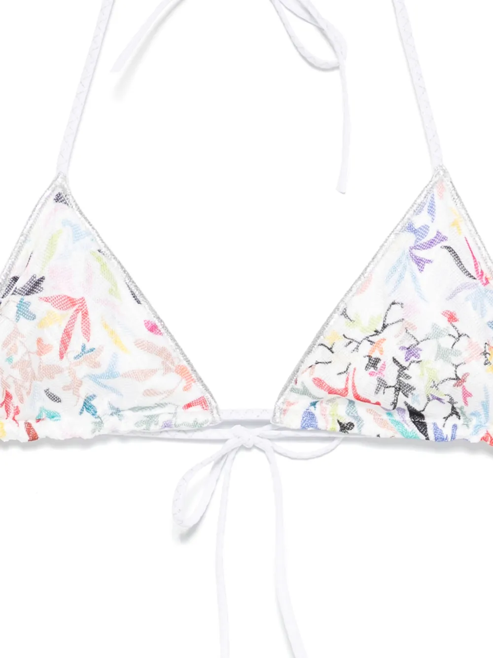 Белый купальник с цветочным принтом, треугольные чашечки, завязки. Полученный вами товар может немного отличаться от изображенного на фото из-за ручной работы, характерной для всех изделий Missoni. Примеряйте купальник поверх собственного белья.