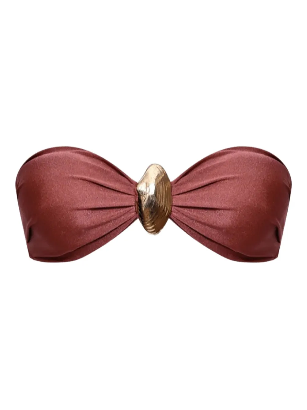 Коричневый бандо без бретелек с ракушками Будьте внимательны: примеряйте купальники поверх собственного белья.