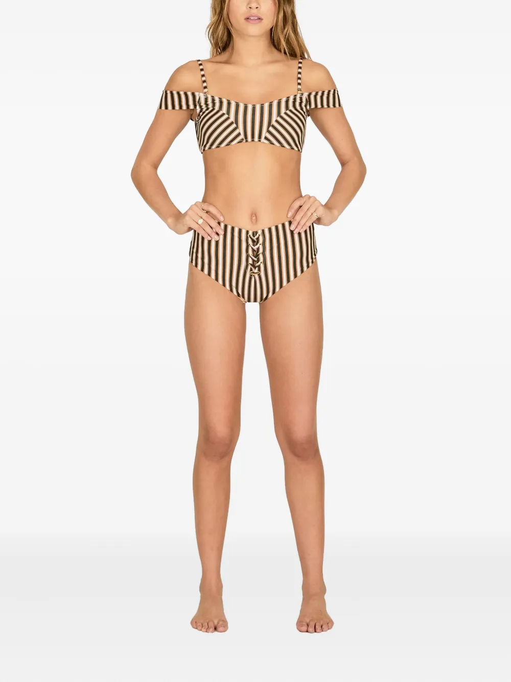 Бикини в полоску со шнуровкой Amuse, коричневый